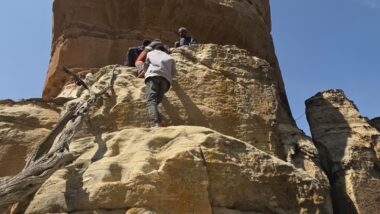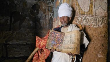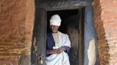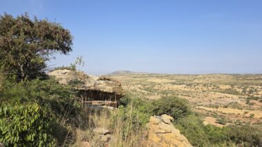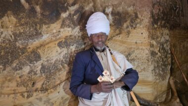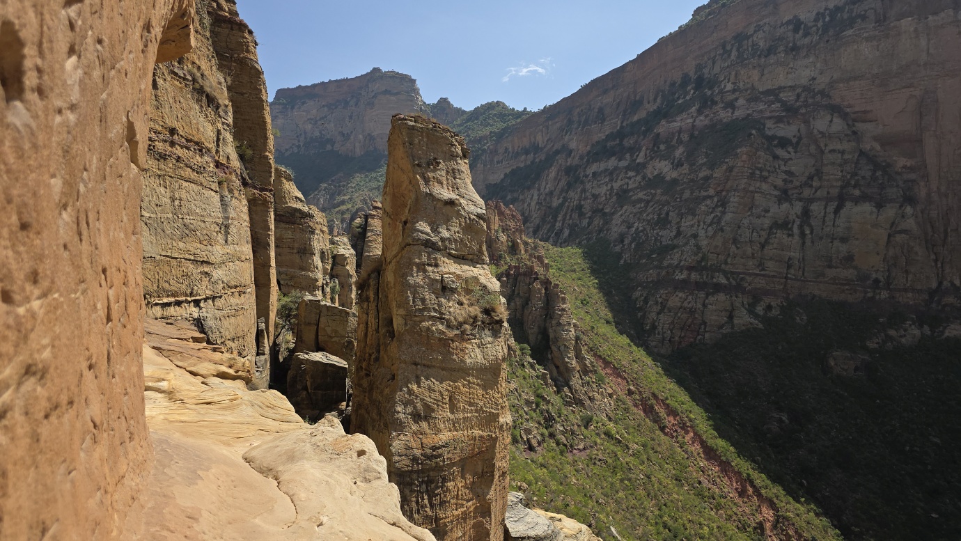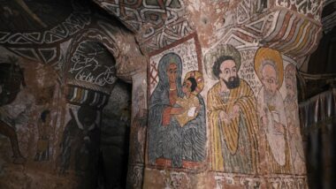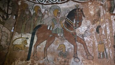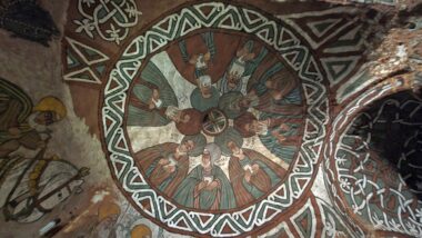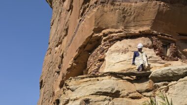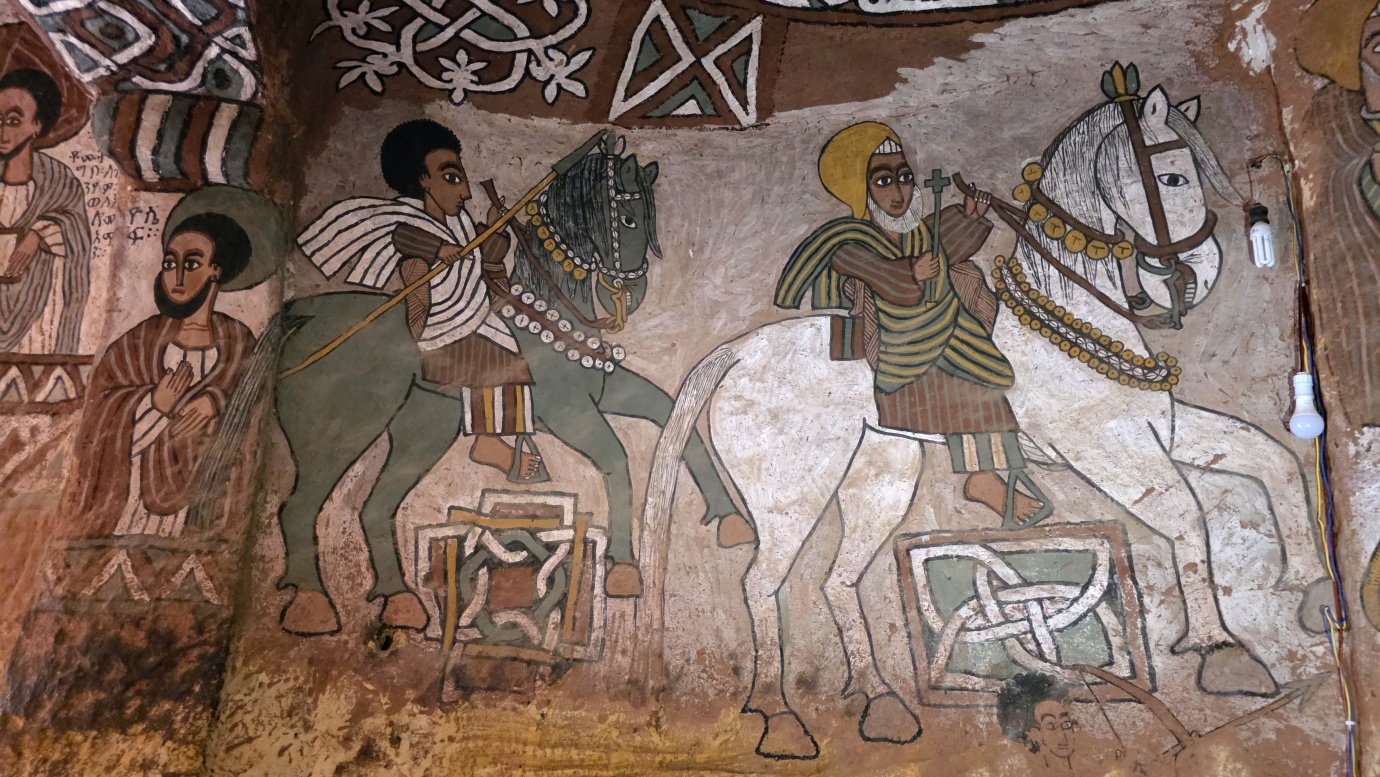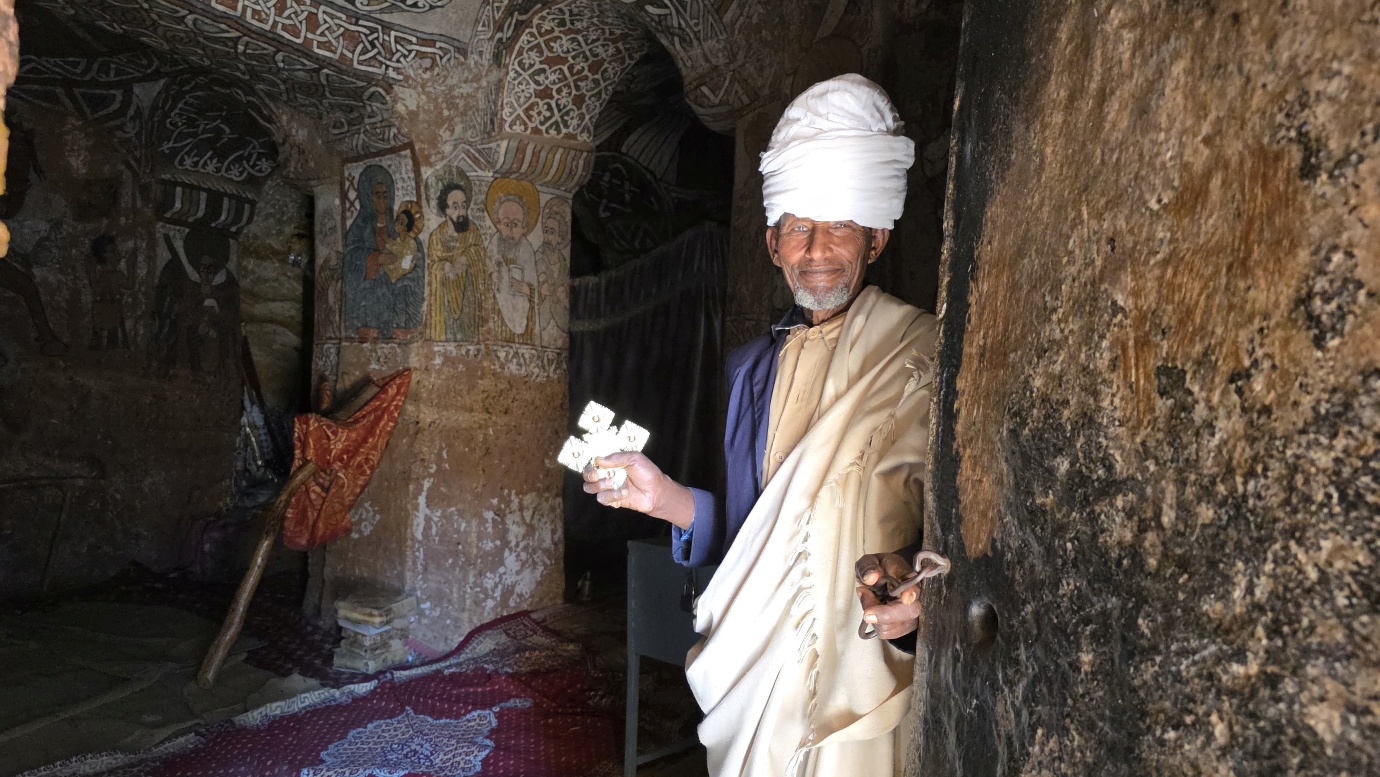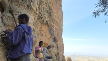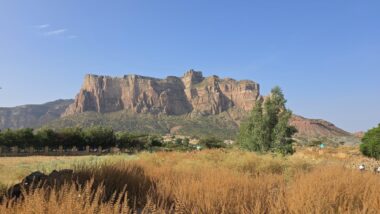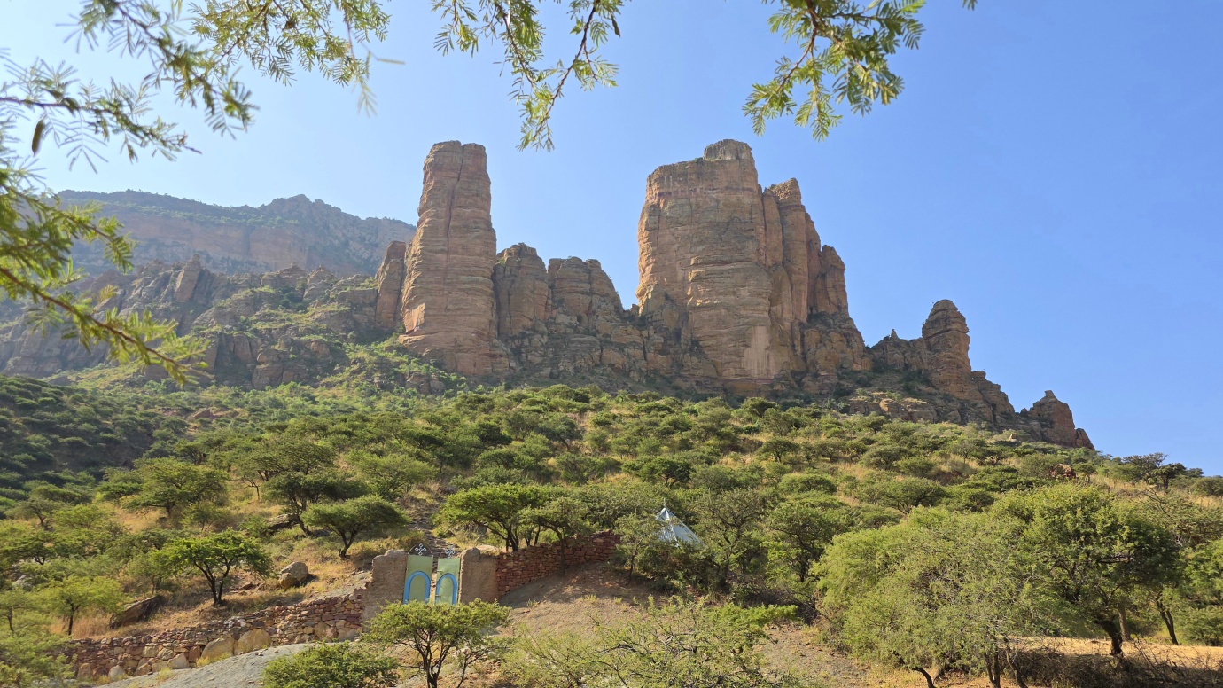 Abune Yemata Guh is a 5th-century rock-hewn church in Ethiopia’s Tigray region, famous for its perilous, steep climb up a cliff face and its well-preserved 5th-century frescoes and murals. These paintings depict religious scenes, saints, and biblical imagery, with colours that remain vibrant due to the dry mountain climate. It was built in honour of Abuna Yemata, one of the Nine Saints who helped spread Christianity in Ethiopia during the 5th and 6th centuries. It is considered one of the most inaccessible churches in the world, perched nearly 2,580 meters above sea level in the Gheralta Mountains. Still, it remains an active place of worship for its dedicated followers (๐๏ธ 600 ETB, Local guide 3,000 ETB, Sherpas 2,400 ETB).