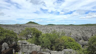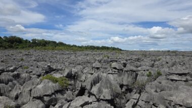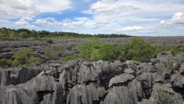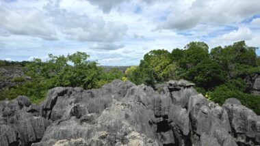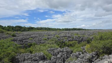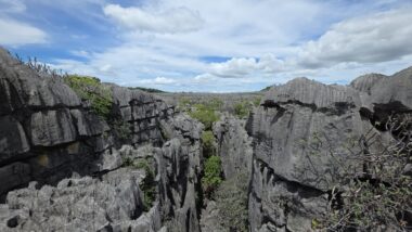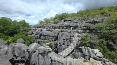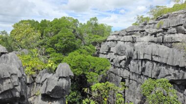 Ankarana National Park, located in northern Madagascar, is a striking and rugged reserve renowned for its sharp limestone tsingy pinnacles, vast underground cave systems, and remarkable biodiversity. Covering 18,225 hectares, it encompasses dry forests and deep canyons that are home to 11 species of lemurs—most notably crowned lemurs and Sanford’s brown lemurs—as well as 14 species of bats and several sacred cultural sites.