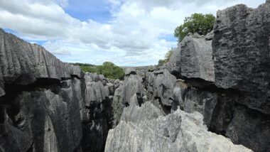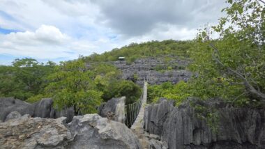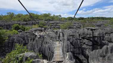We set off early to avoid the midday heat, embarking on a 4-hour, 8-kilometre hike (🎟️ 69,000 MGA; guide: 70,000 MGA) through the razor-sharp Tsingy Meva formations—jagged limestone pinnacles sculpted by erosion—and the surrounding dry forest. The trail included high suspension bridges, scenic viewpoints with sweeping views over the karst landscape, and frequent chances to spot lemurs, chameleons, and a variety of bird species.