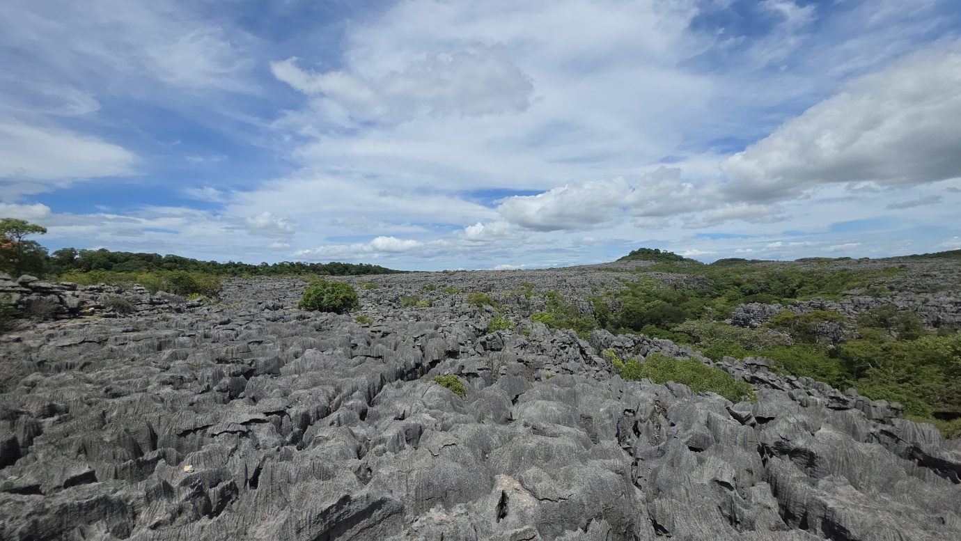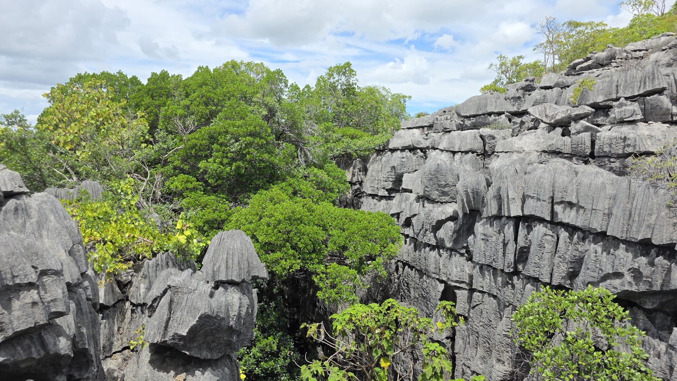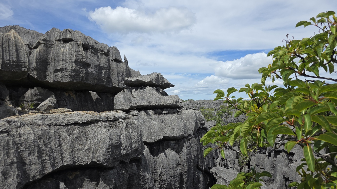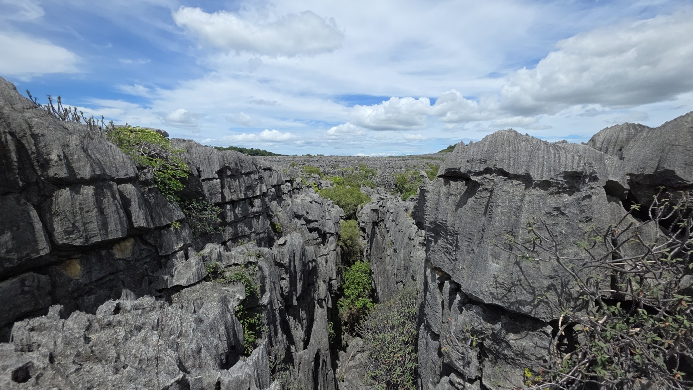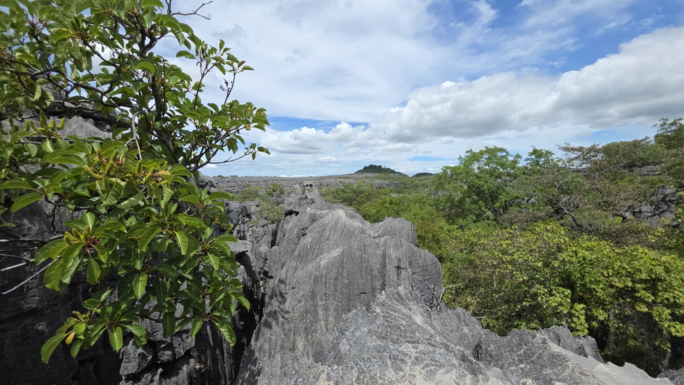 We set off early to avoid the midday heat, embarking on a 4-hour, 8-kilometre hike (🎟️ 69,000 MGA; guide: 70,000 MGA) through the razor-sharp Tsingy Meva formations—jagged limestone pinnacles sculpted by erosion—and the surrounding dry forest. The trail included high suspension bridges, scenic viewpoints with sweeping views over the karst landscape, and frequent chances to spot lemurs, chameleons, and a variety of bird species.