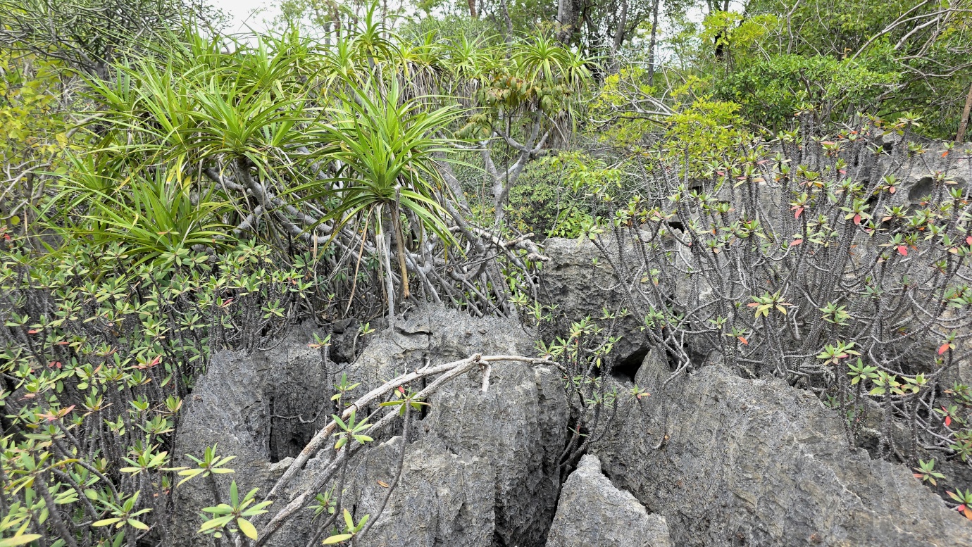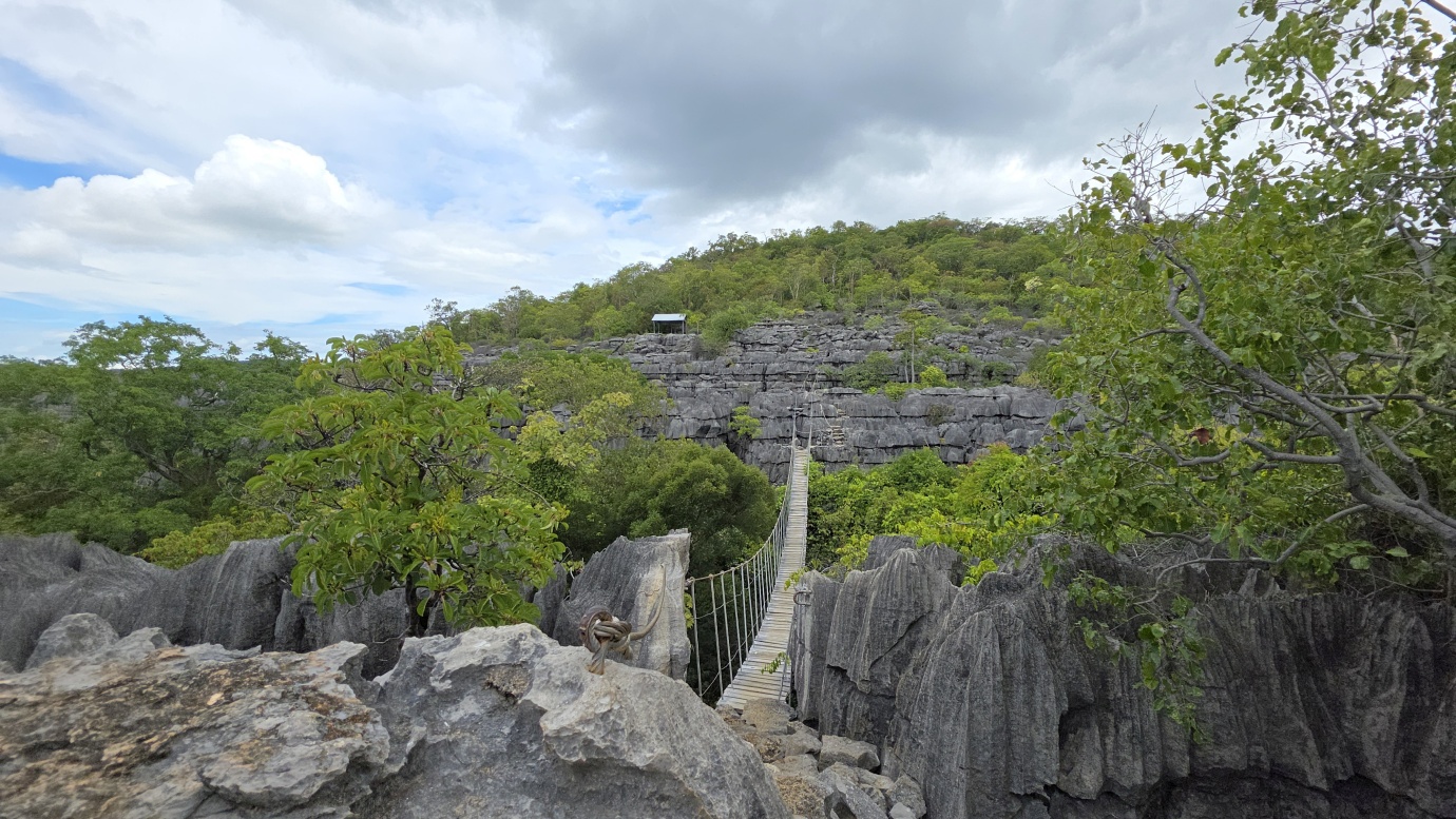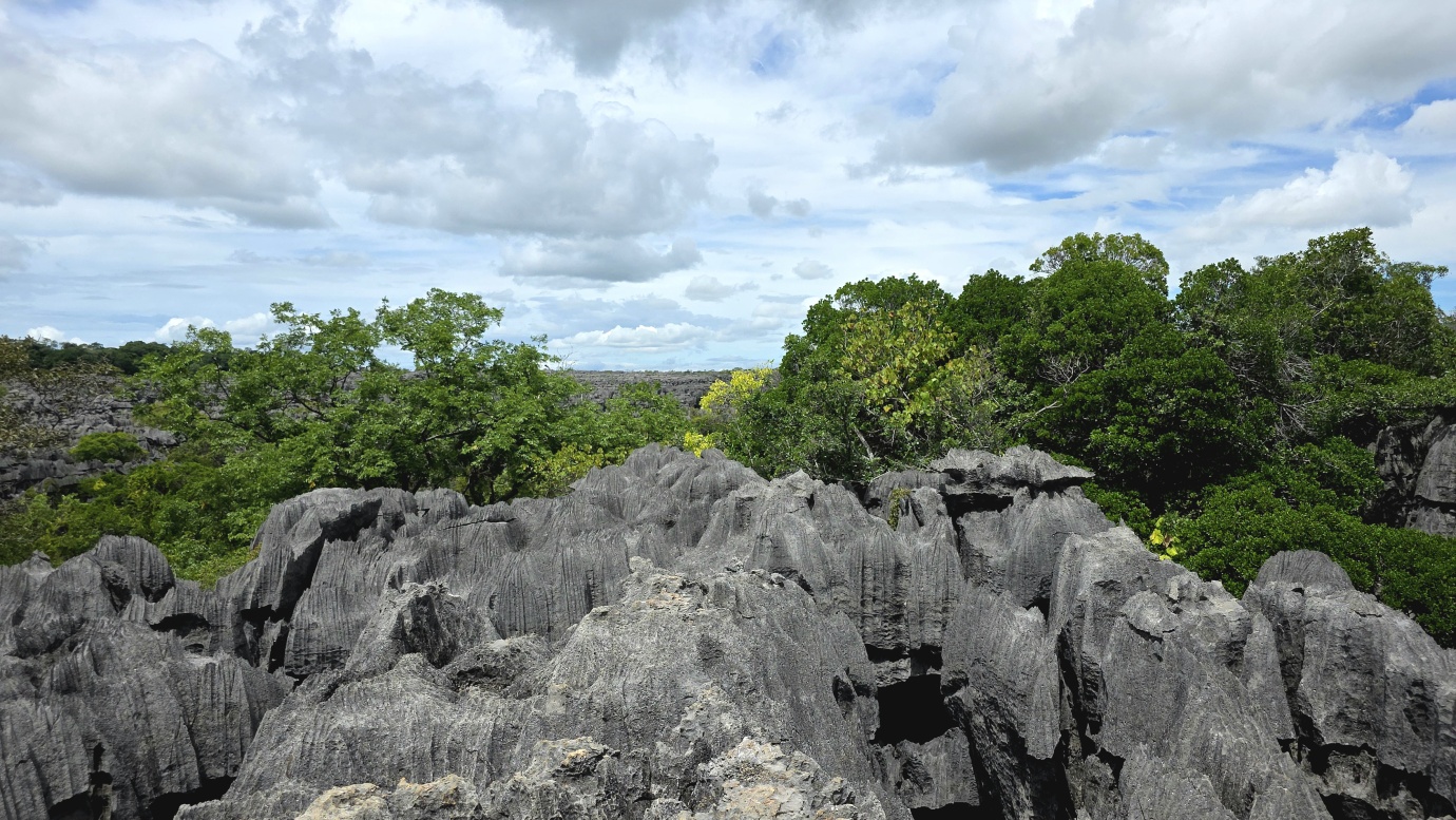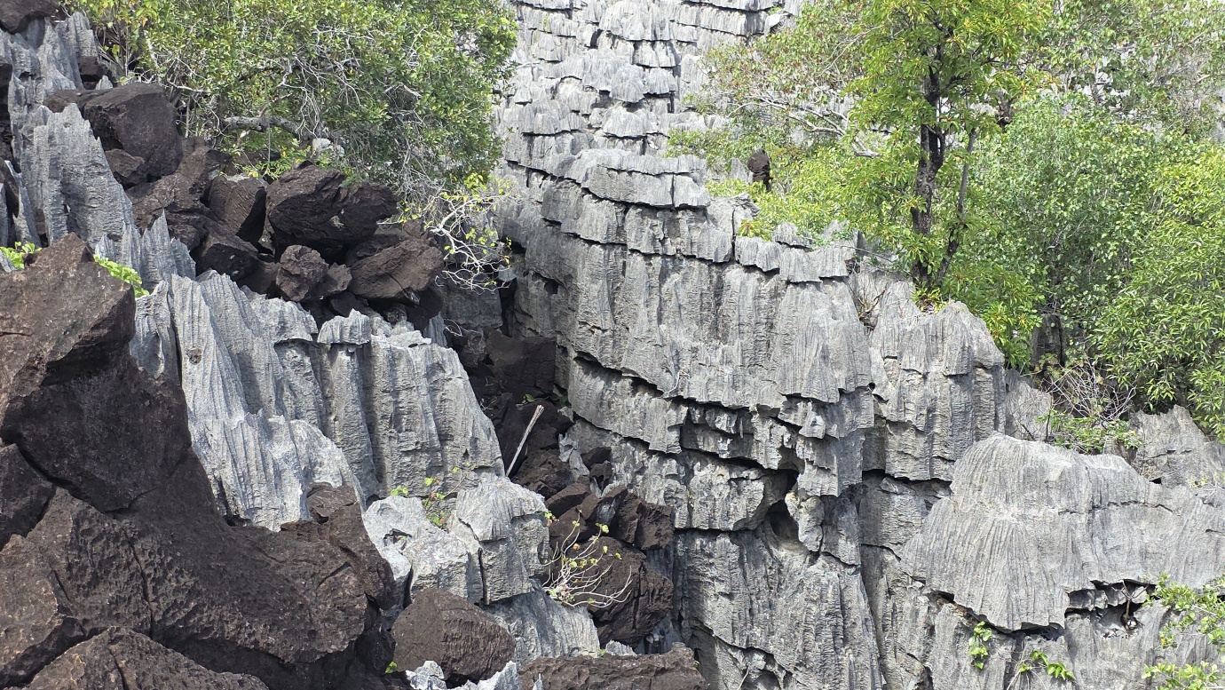 We set off early to avoid the midday heat, embarking on a 4-hour, 8-kilometre hike (🎟️ 69,000 MGA; guide: 70,000 MGA) through the razor-sharp Tsingy Meva formations—jagged limestone pinnacles sculpted by erosion—and the surrounding dry forest. The trail included high suspension bridges, scenic viewpoints with sweeping views over the karst landscape, and frequent chances to spot lemurs, chameleons, and a variety of bird species.