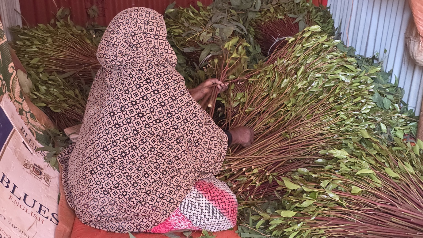 Khat (Catha edulis), known locally as “Jimaa”, is a flowering plant native to East Africa and the Arabian Peninsula, where its leaves and young shoots are traditionally chewed as a stimulant drug. The active ingredients, primarily cathinone and its metabolite cathine, are structurally and pharmacologically similar to amphetamines and produce effects such as euphoria and increased alertness.