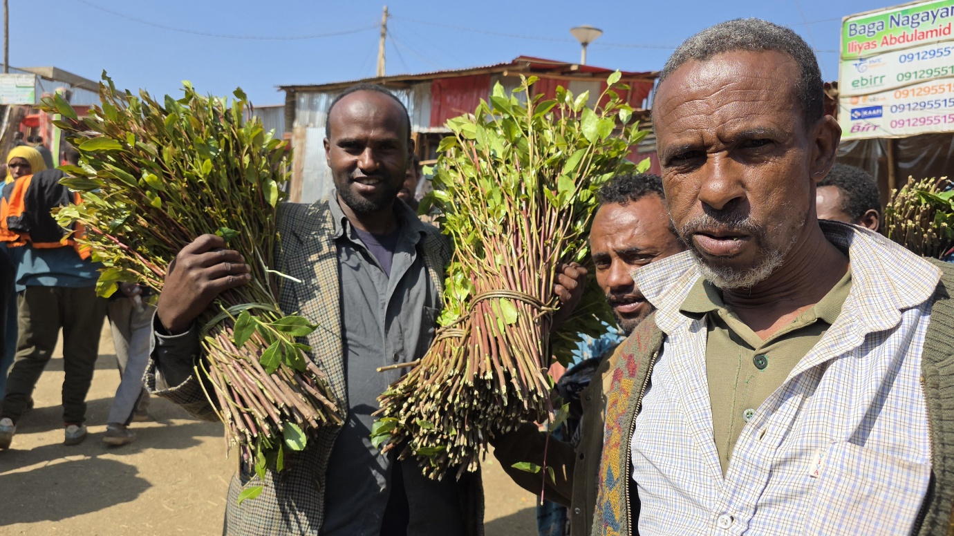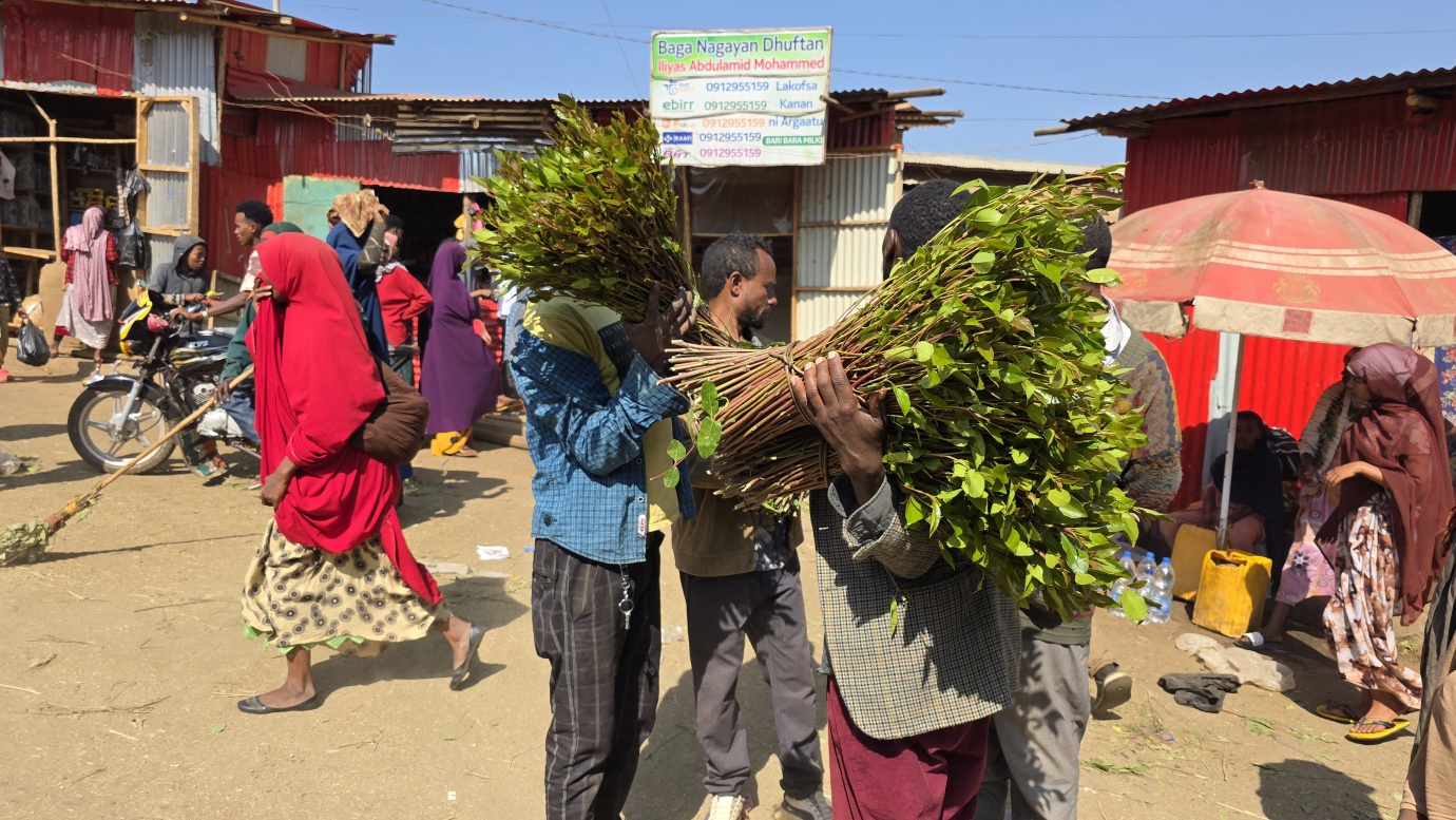 On our way back to Awash, we made a short stop in Aweday, often referred to as the “khat capital of the world”. Here is located the world’s largest vibrant and bustling market for this cash crop, with trade 24 hours a day and trucks leaving for destinations such as Djibouti and Somaliland. It is heavily used in this region, and we witnessed how the towns and society transform throughout the day, simply because of the heavy chewing of “magic” leaves. The price of khat in Ethiopia varies significantly by quality, ranging from as low as 35 ETB to 1,000 ETB or more per bundle/unit, depending on the grade, freshness, and market conditions. High-quality khat, often referred to by local names such as “Awoday” or “organic varieties,” is considerably more expensive due to its potency and desirability.