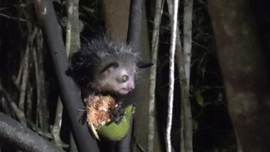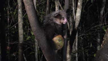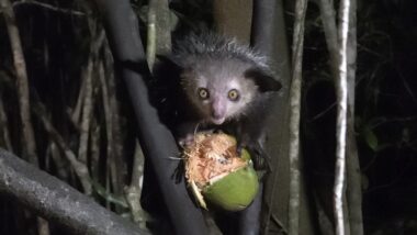Seeing an aye-aye up close feels almost surreal. Its appearance is otherworldly, yet fascinatingโa reminder of Madagascar’s unique biodiversity. Aye-aye is considered rare and endangered due to habitat loss (deforestation in Madagascar), hunting, often driven by local superstitions and naturally low population density. Likely only a few thousand individuals remain in the wild, and populations are scattered and fragmented, making them harder to track and protect. They’re one of the most unusual and vulnerable primates on Earth.