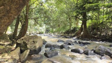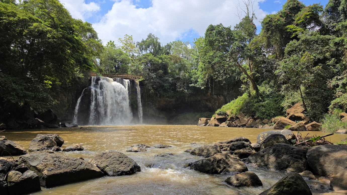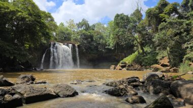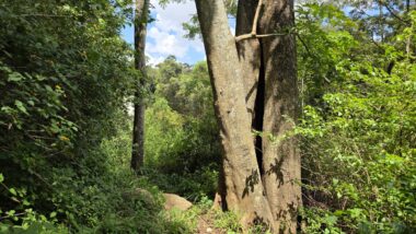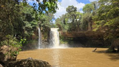 On our way to Aberdare NP, after a one-and-a-half-hour drive from Nairobi, we made a lunch stop at the Blue Post Hotel, just off the A2 near Thika. Hotel was built in 1908 by Captain Ward and originally served as a post office for farmers. It has a long colonial history, is famously mentioned in Elspeth Huxley’s book The Flame Trees of Thika. The grounds were pristine and quiet, the perfect place to enjoy a cold drink on the restaurant’s lawns overlooking the Chania Falls (gatekeeper 1,000 KES). The smaller but still impressive Thika Falls are on the other side of the grounds in a large field next to a craft centre and children’s play area. There is also a small animal park and museum on the grounds.