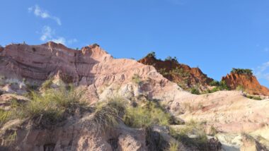 The Cirque Rouge (Red Circus) near Mahajanga is a stunning, protected natural amphitheatre featuring eroded cliffs in vibrant shades of red, pink, ochre, and white. These unique geological formations were caused by intense erosion of sedimentary rocks. Located about 12 km from the city centre, near the Grand Pavois beach, it offers a dramatic, “lunar-like” landscape, often best experienced at sunset (๐๏ธ 5,000 MGA, guide 40,000 MGA). Still, we would recommend coming at the latest by 3 pm, not like us at 4 pm, when the sun was already too low. The little hike around the canyon took us around 40 minutes.