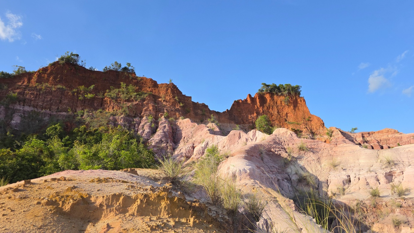 The Cirque Rouge (Red Circus) near Mahajanga is a stunning, protected natural amphitheatre featuring eroded cliffs in vibrant shades of red, pink, ochre, and white. These unique geological formations were caused by intense erosion of sedimentary rocks. Located about 12 km from the city centre, near the Grand Pavois beach, it offers a dramatic, “lunar-like” landscape, often best experienced at sunset (๐๏ธ 5,000 MGA, guide 40,000 MGA). Still, we would recommend coming at the latest by 3 pm, not like us at 4 pm, when the sun was already too low. The little hike around the canyon took us around 40 minutes.