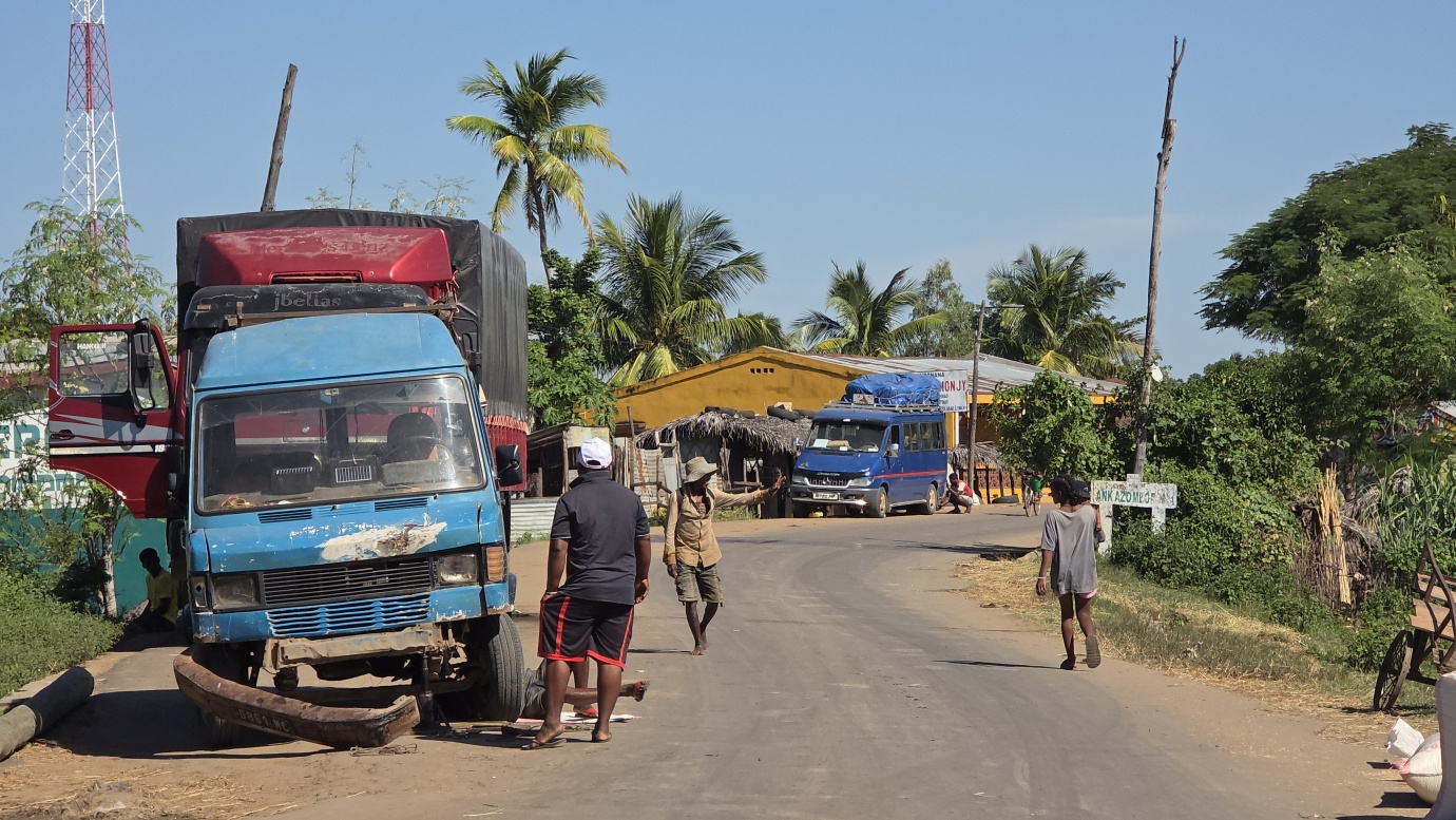 The drive from Toamasina to Mahajanga via Antananarivo is roughly 920 km in total, and it took us two full days’ drive with an overnight in Antananarivo and Beamilaka. The scenery shifted dramatically: we started with a lush, humid coastal rainforest, climbed into the cool highlands around Antananarivo with rice terraces and rolling hills, then descended into the dry western landscapesโgolden plains, sparse forests, and baobabs near Mahajanga.