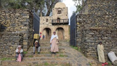 We took a full-day guided tour (3,000 ETB) that explored the city and its neighbourhood, followed by an afternoon visit to the Fasil Ghebbi complex. In the morning, we drove to the village to visit the synagogue of Beta Israel, the Ethiopian Jewish community historically centred around Gondar. They were agrarian, practised a unique form of Judaism, and faced centuries of prejudice, culminating in mass migration to Israel during the late 20th century. Today, a portion of the community remains in Gondar while awaiting emigration, often living under challenging conditions.