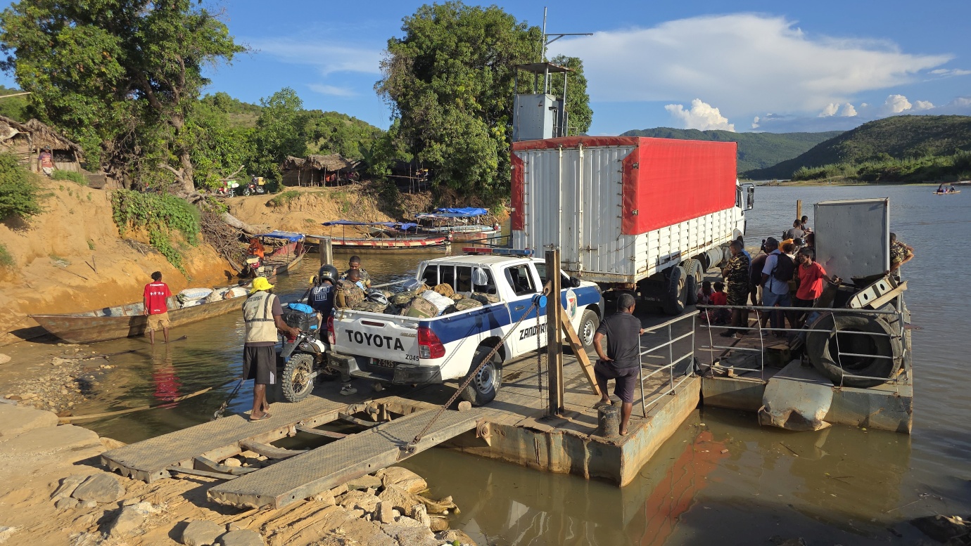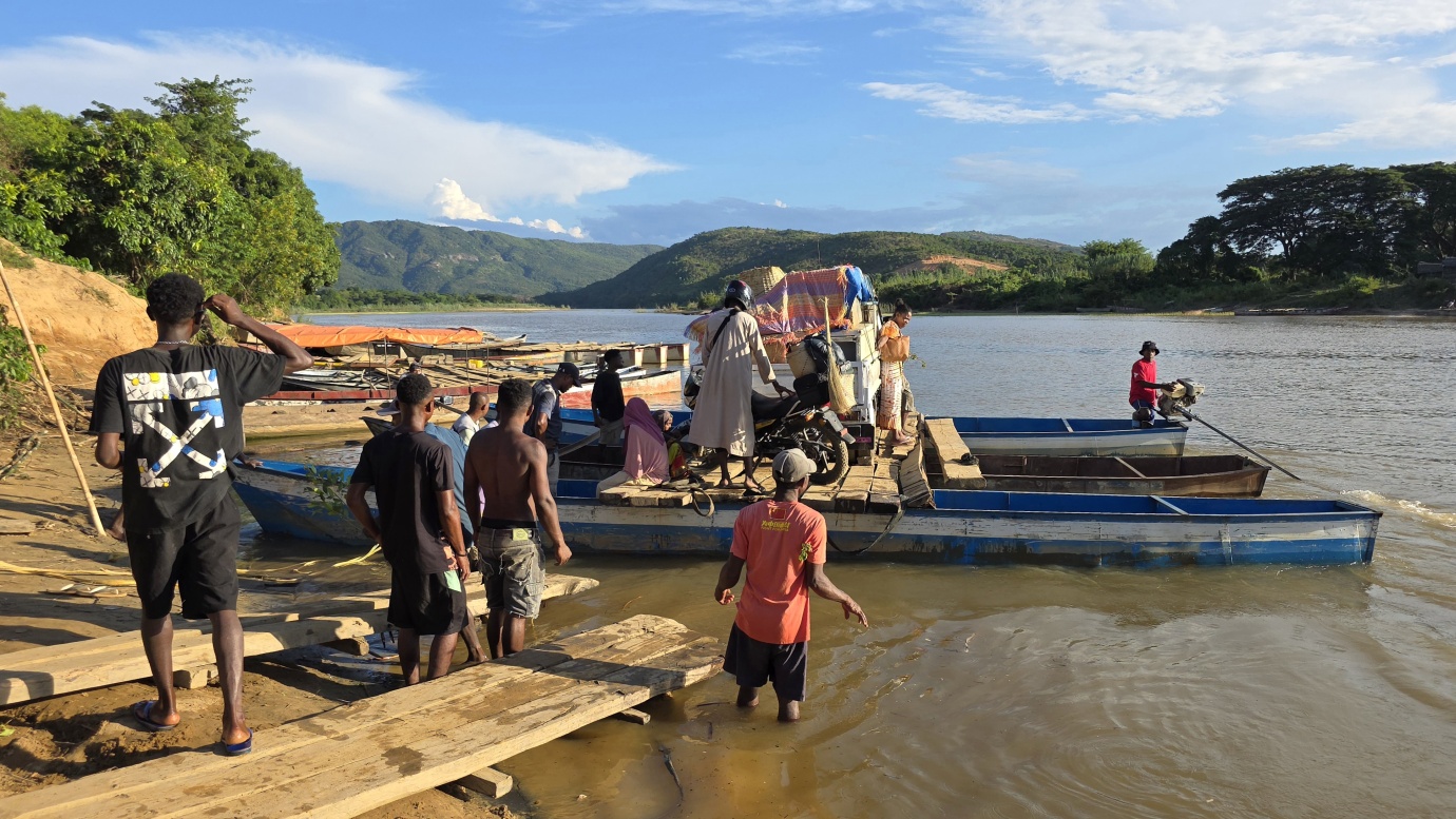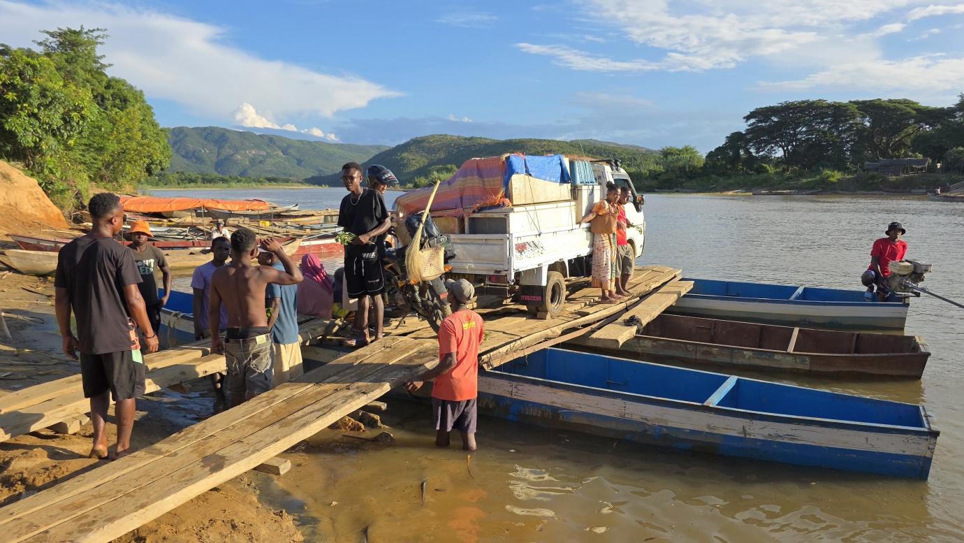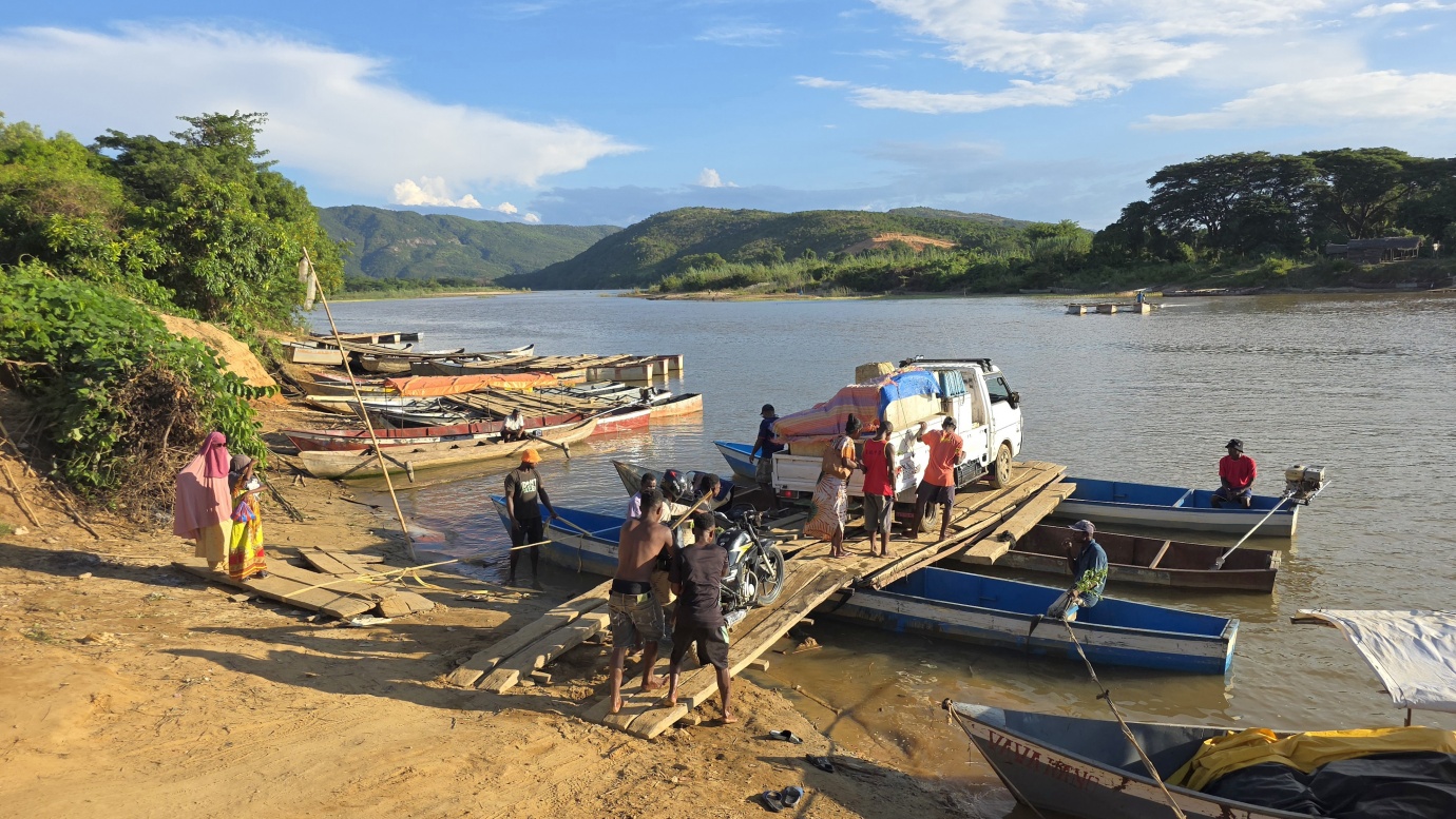 As we mentioned in our previous post (โDrive to Ankaranaโ), the main challenge is crossing the Ifasy River. The bridge was destroyed by Cyclone Gamane, which hit the region between March 26 and 29, 2024. A provisional free ferry, loosely organised by locals and the army, is in placeโbut in practice, it barely functions. We spoke with other drivers, and many reported being stuck there for several days.