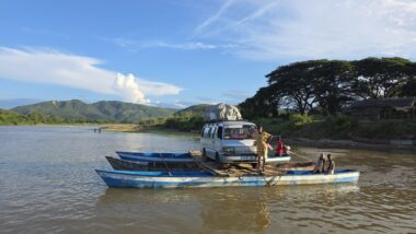 We couldnโt risk that kind of delay, so we did our research and prepared for the so-called local โfisherman mafia,โ which offers a quick ferry transfer for small cars (about 3 minutes) for 50,000 MGA. The setup is simple: three canoes tied together with a wooden platform on top. Naturally, they initially tried to overcharge us, but once they realised we knew the standard price, they backed down. And since our car was blocking access to their makeshift ferry, they didnโt have much choice but to take us across.