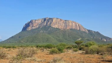 Today we woke up really early to drive at 06:00 towards Isiolo and Archer’s Post, the gateway to the Samburu region. It took us around three hours to get there. We went through heavy army checkpoints up to Mount Ololokwe, a distinctive, flat-topped mountain with a sheer rock face that makes it a striking landmark visible from the Isiolo-Marsabit highway. It is considered sacred by the local Samburu people, who use it for cultural ceremonies, prayers, and as a vital water source for their livestock. Then, we spent a whole day around the Samburu villages.