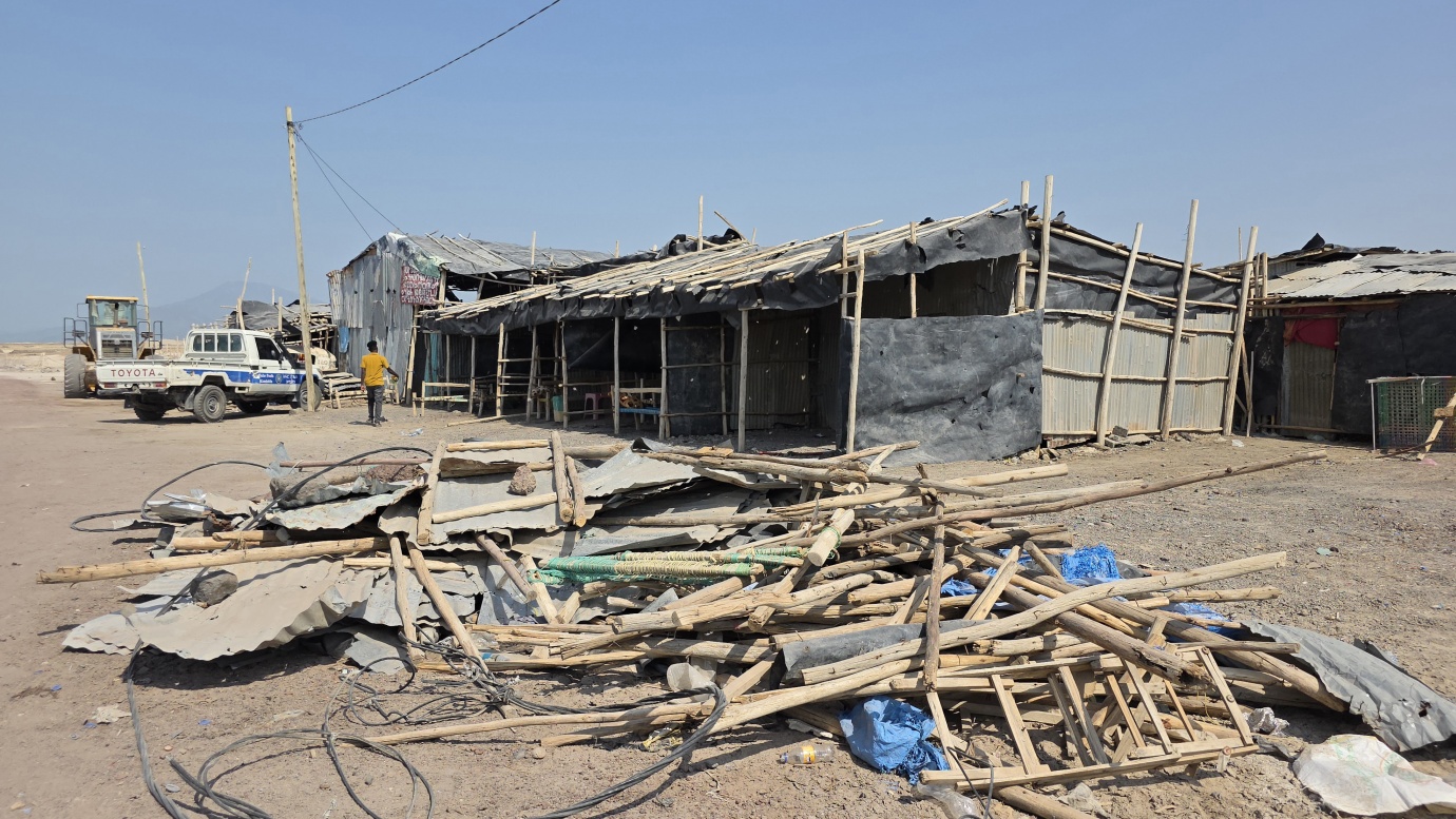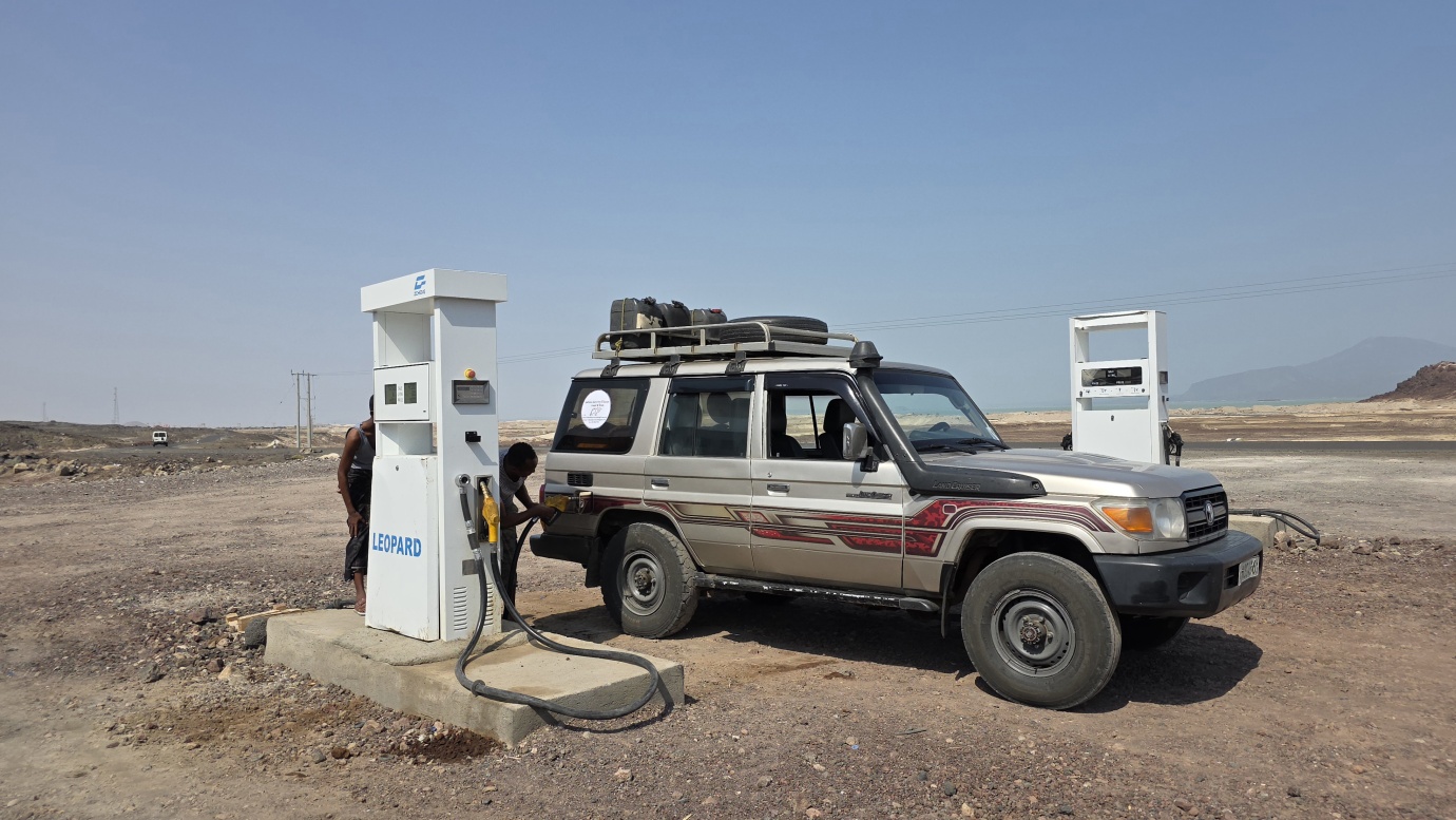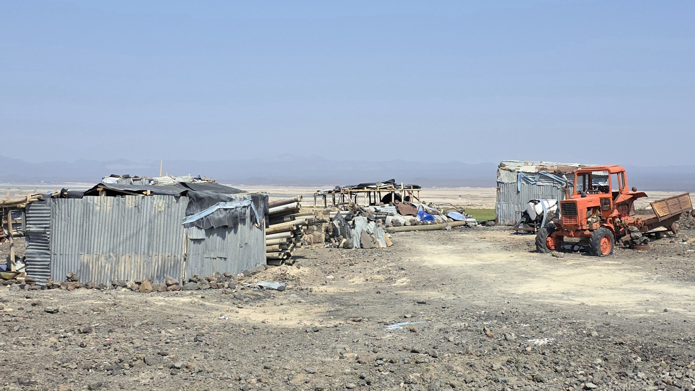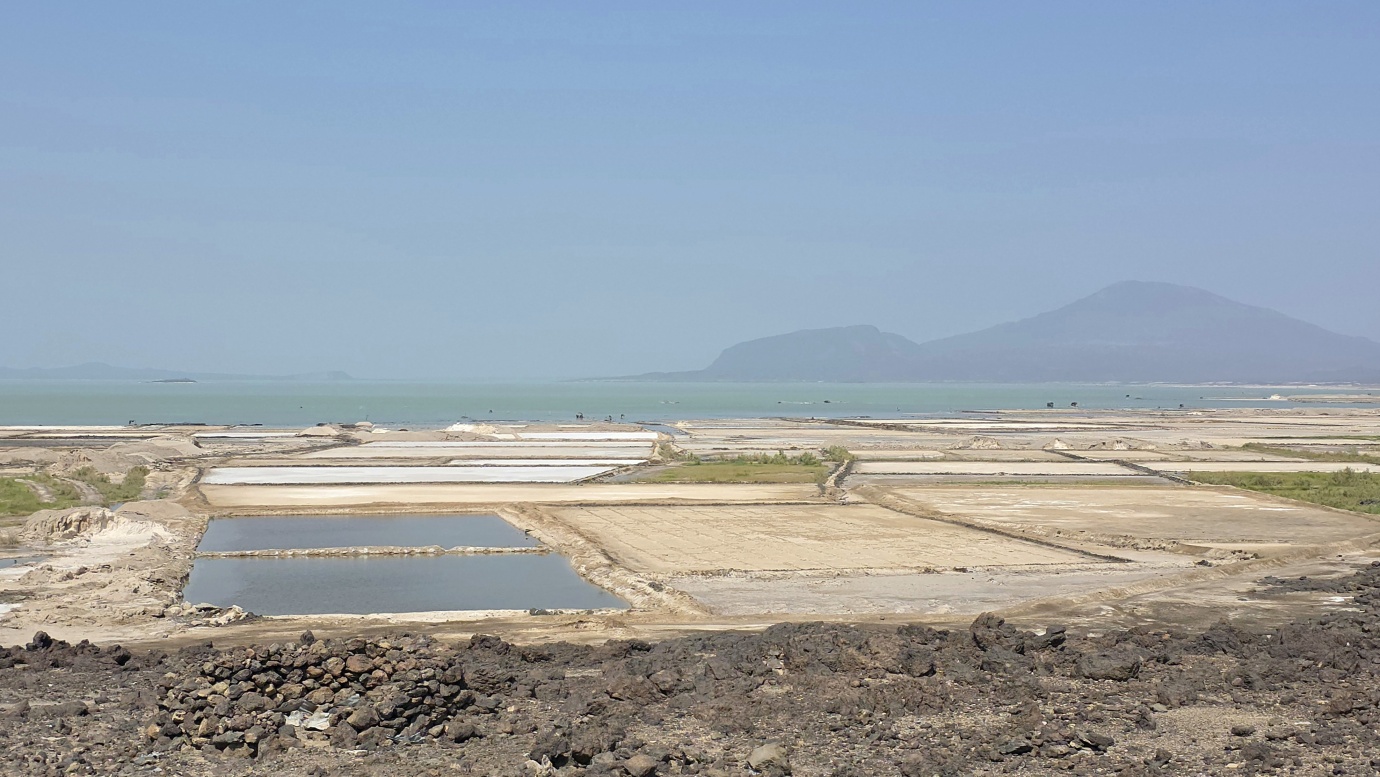We drove from Semera to Lake Afdera for about 4 hours on an asphalt road, taking us from the city into the increasingly arid, otherworldly Danakil Depression. The scenery transformed from a more populated area to a vast, volcanic, and desert landscape of solidified lava, rock, and sand, with occasional palm-lined oases and small hamlets along the way. It was just a short stop to see salt foam; it’s possible to soak in, but the area around is not nice due to salt extraction, so we skipped that option.