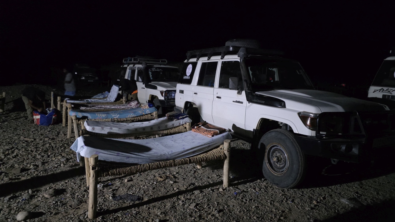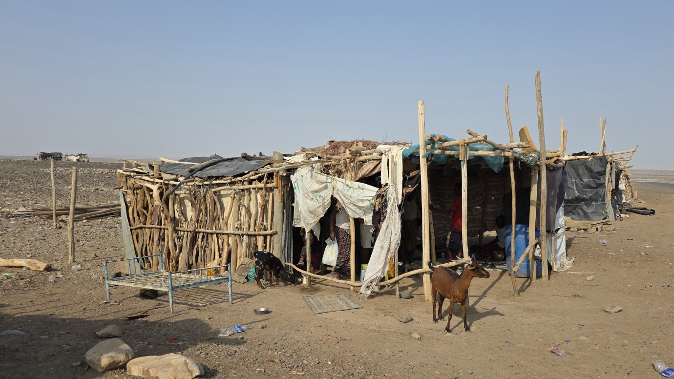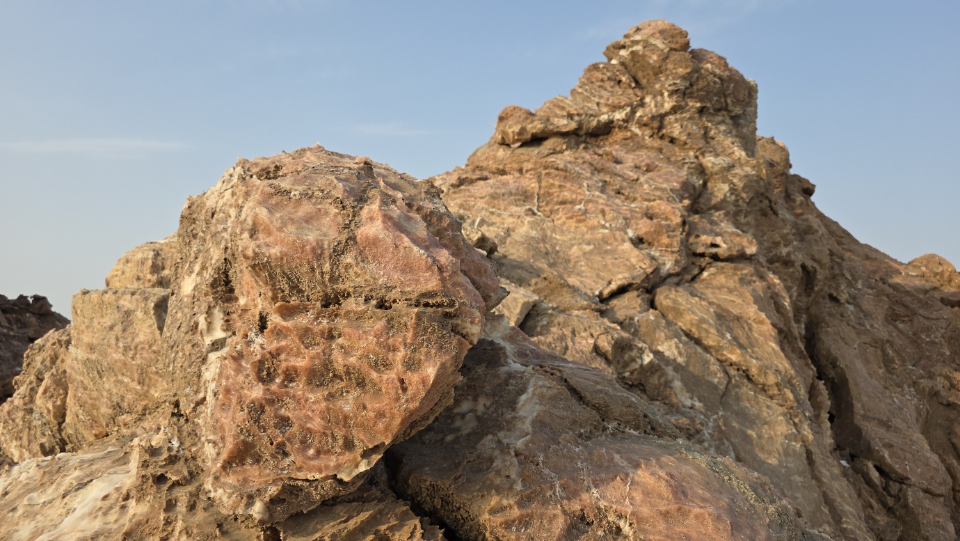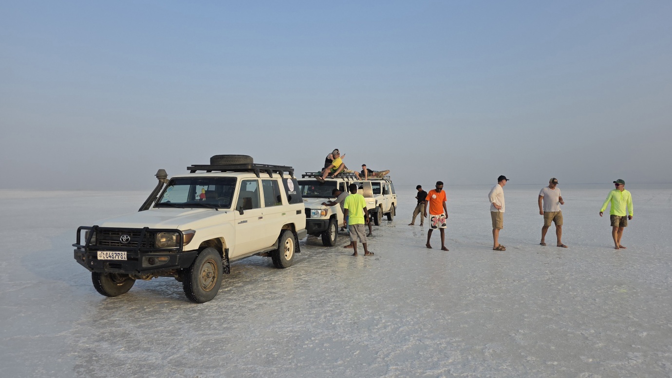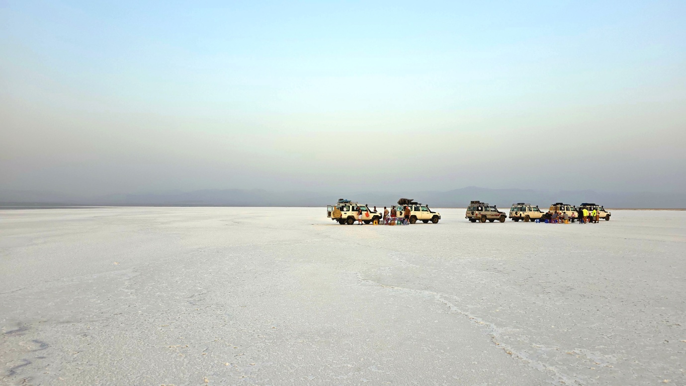 We made it to the world’s saltiest lake, Lake Asale, also known as Lake Karum. It is a hypersaline lake in Ethiopia’s Danakil Depression, located about 120 meters below sea level, making it one of the lowest points on Earth. Lake Asale was formed over centuries through a geological process where it was flooded by the Red Sea, causing mineral-rich deposits to settle and form a thick salt crust. It has an extreme salinity of 43% primarily due to high evaporation and a lack of outflow. It is also known for its vast salt flats, which are still mined by the Afar people using traditional hand-cutting methods and transported by camel caravan.