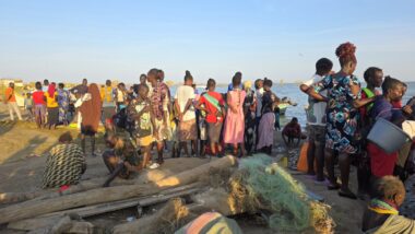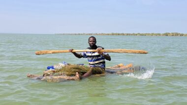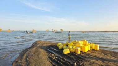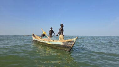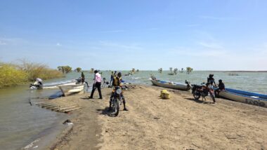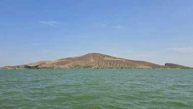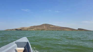 After a two-day drive, we finally arrived in Lodwar around 11 in the morning, but immediately continued for another hour to Kalokol to catch our boat to visit the lake. After complicated negotiations, we agreed to hire the fishing boat with a 40hp engine for 15,000 KES and jumped in. Nobody told us in advance that the lake was rough with one-meter waves, so the small fishing-boat ride was perilous, and we can’t really recommend it. Probably, we were supposed to look for a bigger boat.