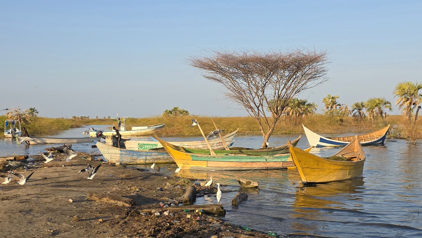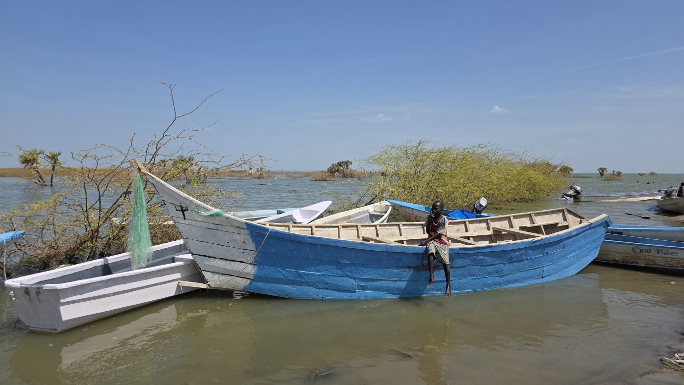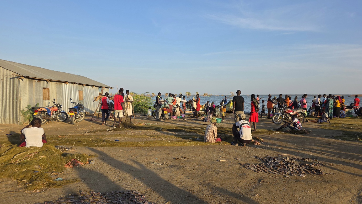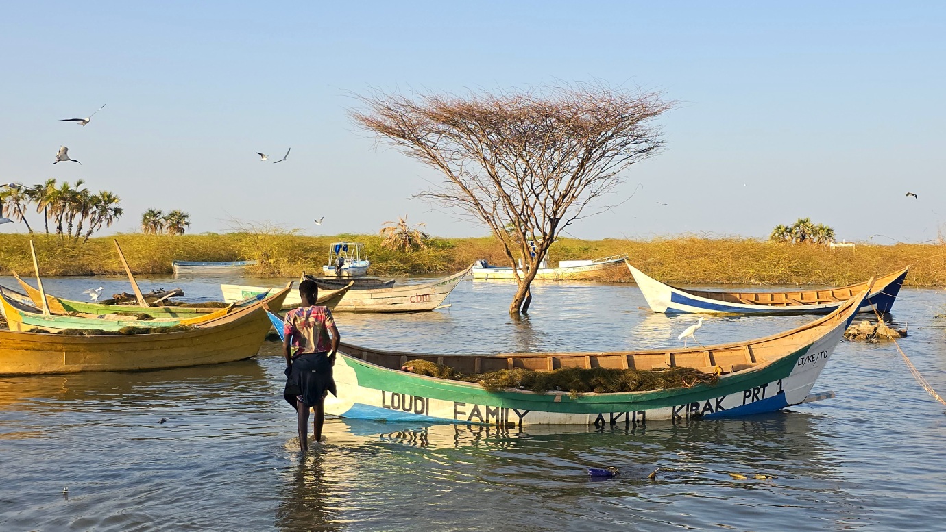 After a two-day drive, we finally arrived in Lodwar around 11 in the morning, but immediately continued for another hour to Kalokol to catch our boat to visit the lake. After complicated negotiations, we agreed to hire the fishing boat with a 40hp engine for 15,000 KES and jumped in. Nobody told us in advance that the lake was rough with one-meter waves, so the small fishing-boat ride was perilous, and we can’t really recommend it. Probably, we were supposed to look for a bigger boat.