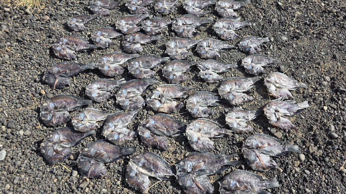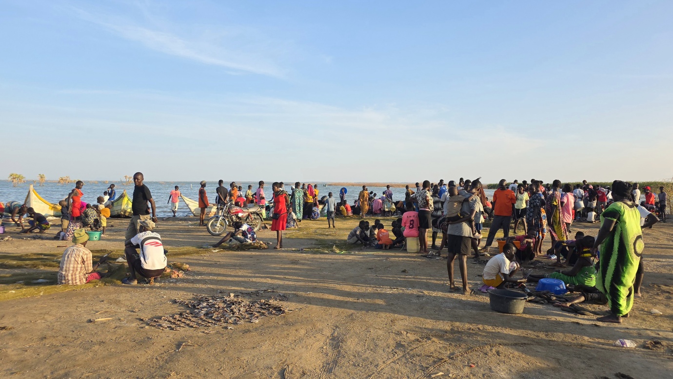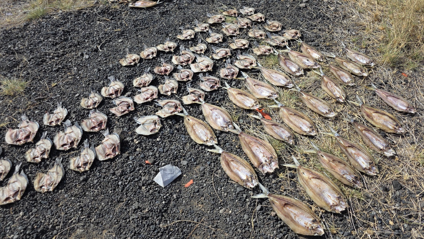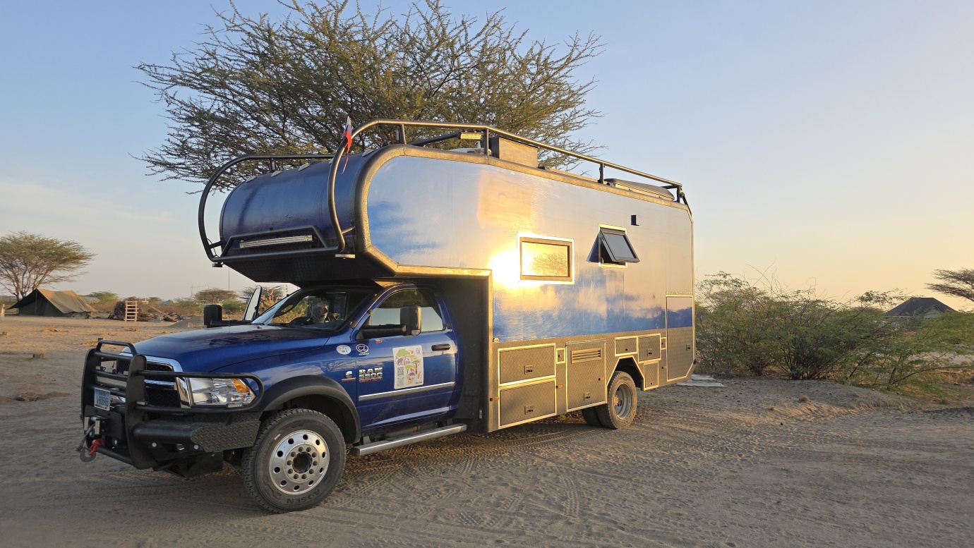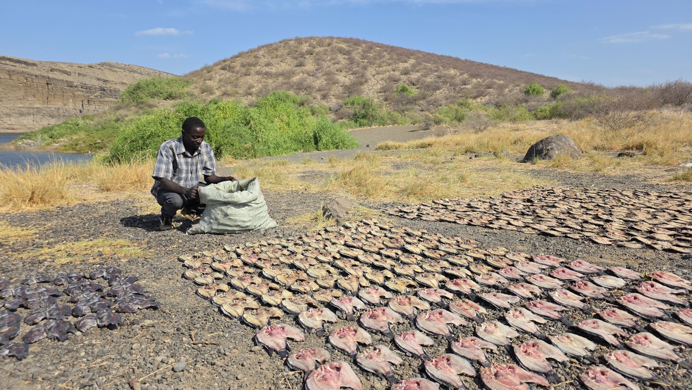 After a two-day drive, we finally arrived in Lodwar around 11 in the morning, but immediately continued for another hour to Kalokol to catch our boat to visit the lake. After complicated negotiations, we agreed to hire the fishing boat with a 40hp engine for 15,000 KES and jumped in. Nobody told us in advance that the lake was rough with one-meter waves, so the small fishing-boat ride was perilous, and we can’t really recommend it. Probably, we were supposed to look for a bigger boat.