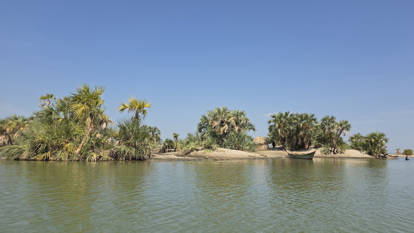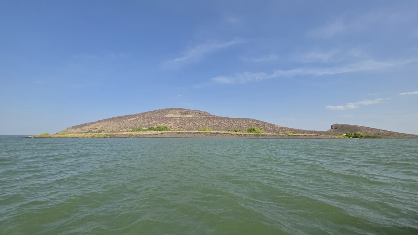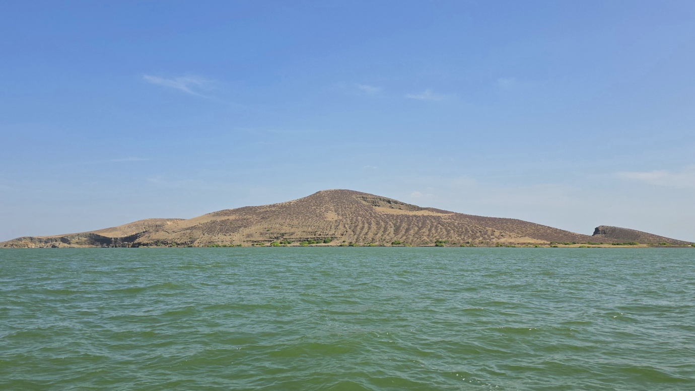 Lake Turkana is the world’s largest permanent desert lake, a saline, alkaline “Jade Sea” in the Rift Valley, known for its volcanic surroundings, rich fossil sites, and abundant Nile crocodiles. It has a unique geography centred around Central Island, an active volcanic cone with three crater lakes (Crocodile, Flamingo, Tilapia) that host diverse wildlife and significant biodiversity, forming a vital part of the UNESCO World Heritage site, Lake Turkana National Parks. The surrounding area is extremely hot and arid, classified as desert and xeric shrubland, receiving less than 250 mm of rainfall annually. Strong, sudden winds are frequent. The lake’s primary perennial water source is the Omo River from the Ethiopian Highlands, which provides about 90% of its inflow.