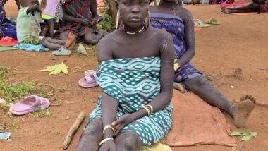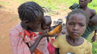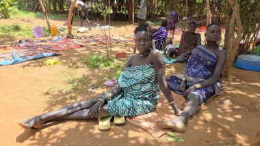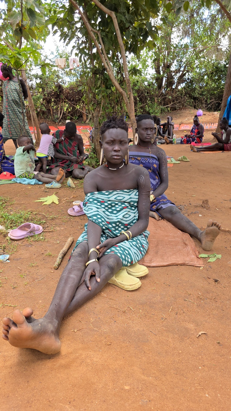 After arriving in Key Afer, we had a coffee and found a local guide (1,000 ETB) who knew where the Mursi tribe (entrance 2,000 ETB) was located at the moment. We couldn’t visit them in their original location because their presence conflicts with other tribes. The Mursi tribe is an indigenous ethnic group in Ethiopia’s Lower Omo Valley, known for its distinctive pastoralist culture, particularly the practice of women wearing large lip plates. Their society is based on cattle herding, a rich oral tradition, and elaborate social rituals, including ceremonial duelling and body painting. Like many indigenous groups, they face challenges from modernisation and environmental changes. Both men and women use body paint for decorative and symbolic purposes.
