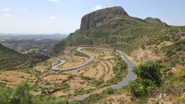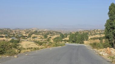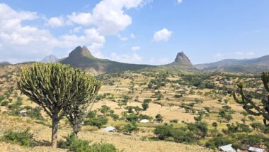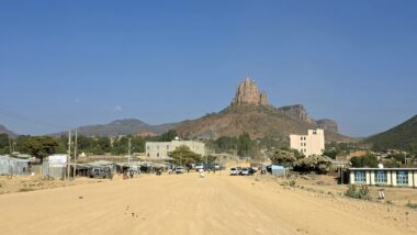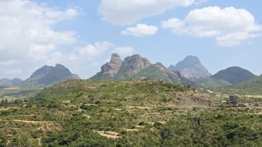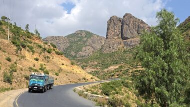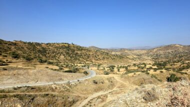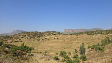 Early in the morning, we drove from Hawzen towards Aksum, mostly on tarmac, with a few photo stops and a visit to the Temple of the Moon in Yeha. The road is marked by dramatic, breathtaking scenery of rugged mountains, deep valleys, and expansive green landscapes, contrasted by the challenges of a sometimes rough road surface. The route was a picturesque, albeit sometimes difficult, drive through a land of both ancient beauty and hardship.