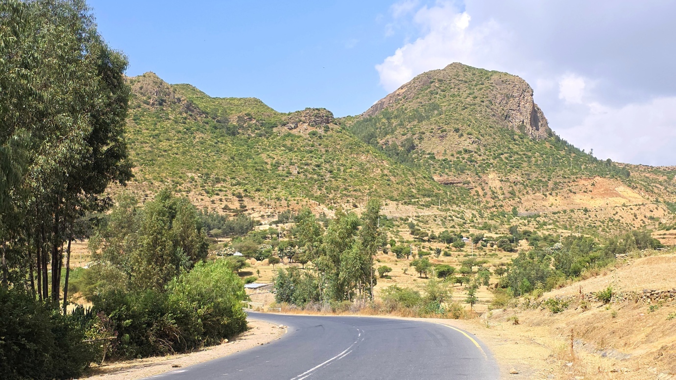 Early in the morning, we drove from Hawzen towards Aksum, mostly on tarmac, with a few photo stops and a visit to the Temple of the Moon in Yeha. The road is marked by dramatic, breathtaking scenery of rugged mountains, deep valleys, and expansive green landscapes, contrasted by the challenges of a sometimes rough road surface. The route was a picturesque, albeit sometimes difficult, drive through a land of both ancient beauty and hardship.