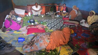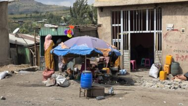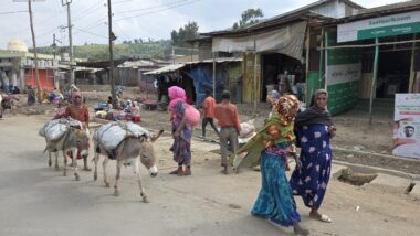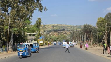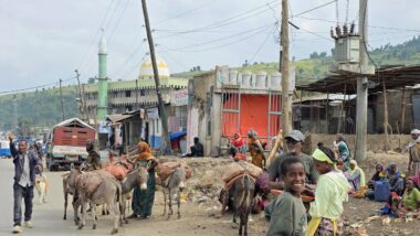 The road from Chiro to Harar offers a mixed landscape with some beautiful scenery, but it is also marked by rough, chaotic traffic in the smaller towns along the way. The tarmac was good, with a few short, damaged sections, so driving through the Ethiopian Highlands was not so bad, with gradually increasing altitude to nearly 2,700 meters above sea level. We made a few photo stops at possible viewpoints and in small villages. We also got an invitation to see the local house after the wedding, where the whole family was relaxed after chewing khat.