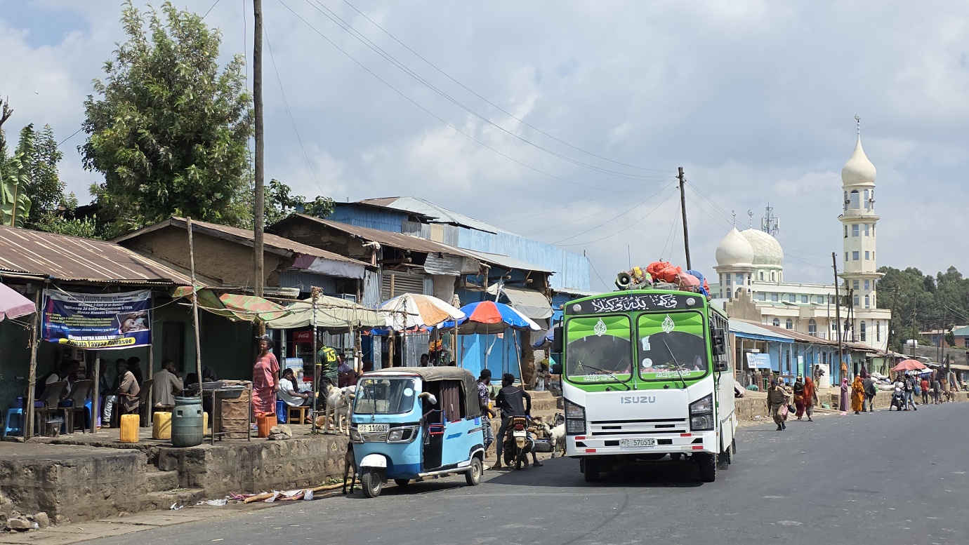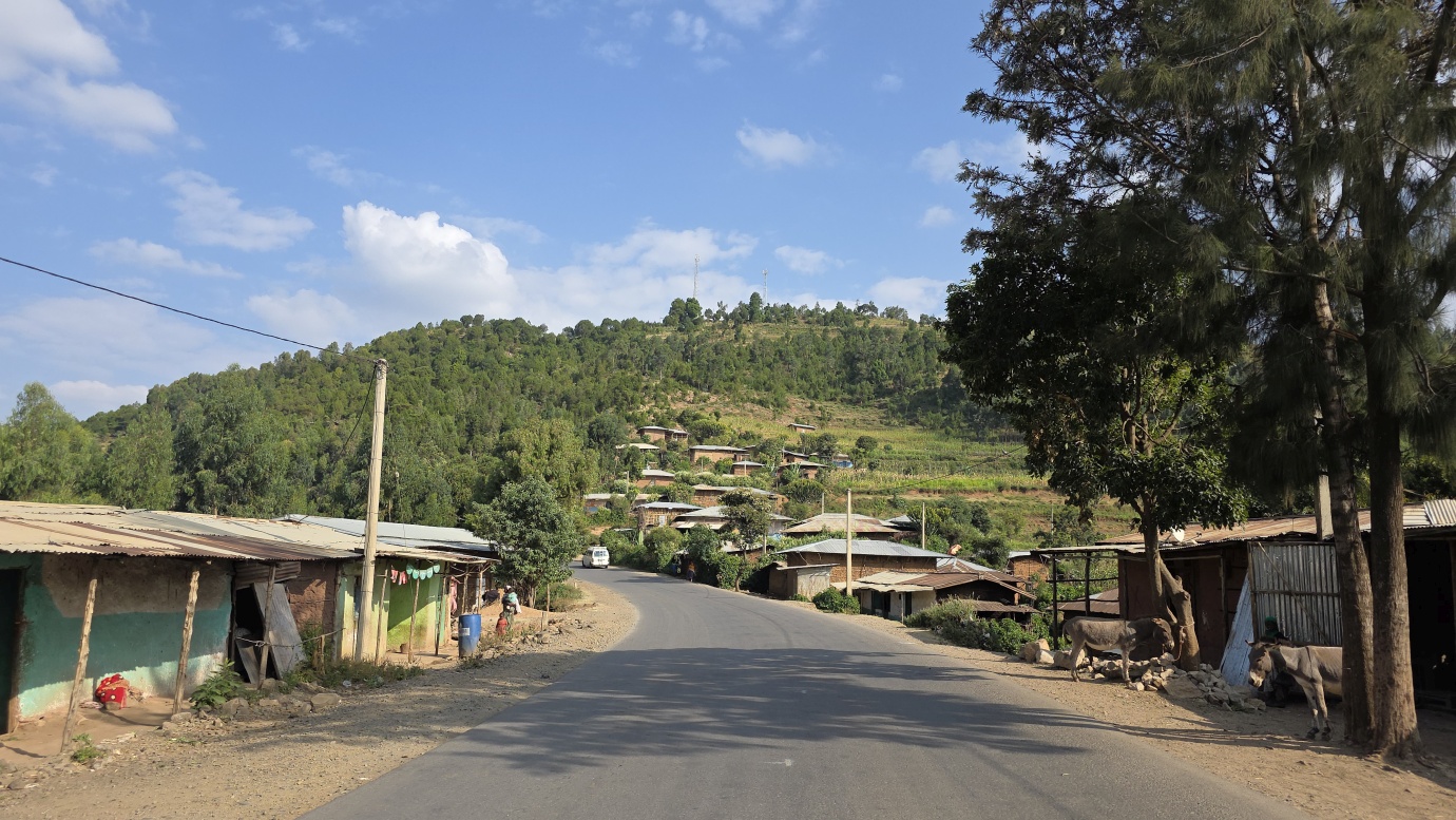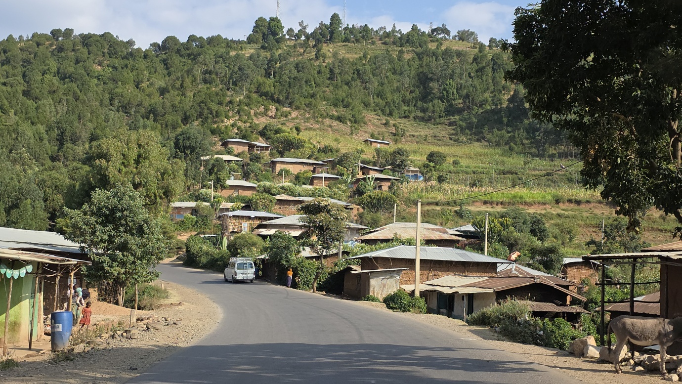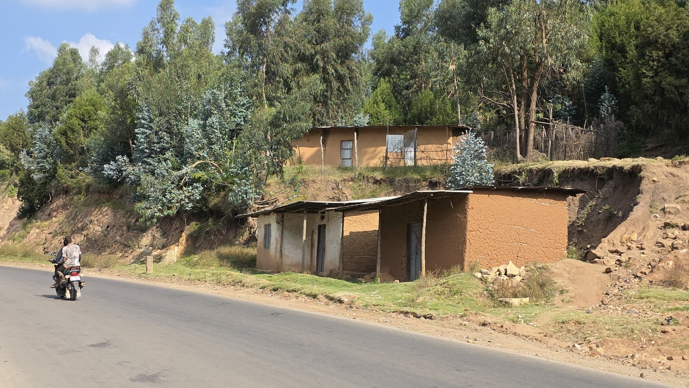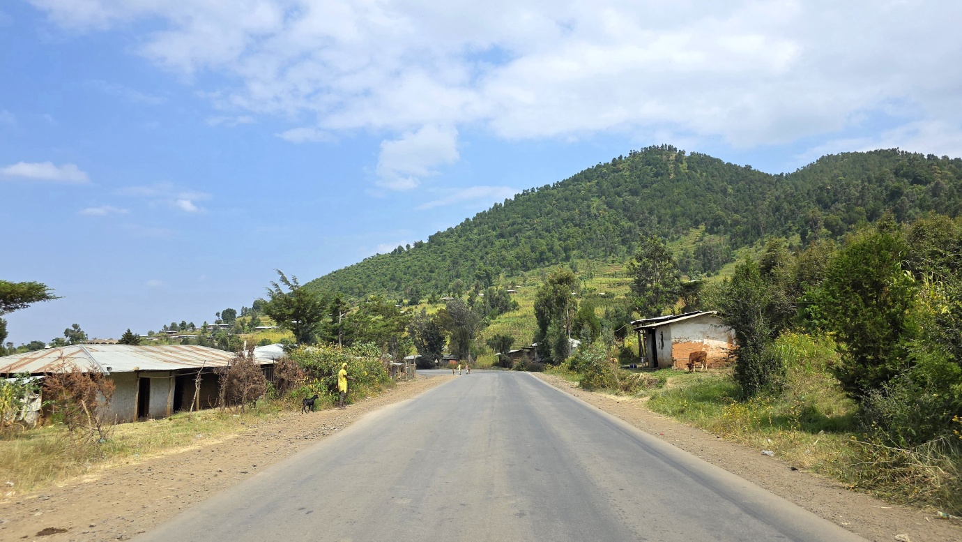 The road from Chiro to Harar offers a mixed landscape with some beautiful scenery, but it is also marked by rough, chaotic traffic in the smaller towns along the way. The tarmac was good, with a few short, damaged sections, so driving through the Ethiopian Highlands was not so bad, with gradually increasing altitude to nearly 2,700 meters above sea level. We made a few photo stops at possible viewpoints and in small villages. We also got an invitation to see the local house after the wedding, where the whole family was relaxed after chewing khat.
