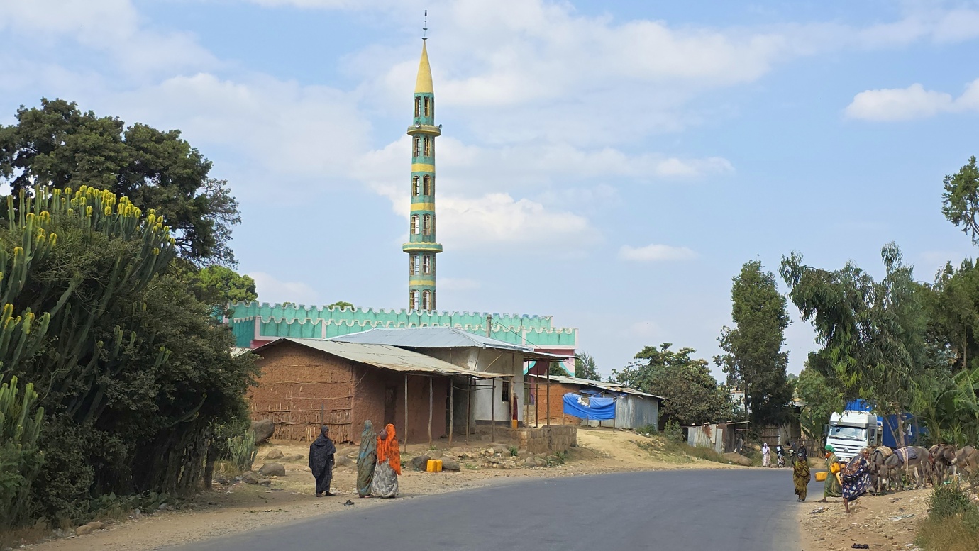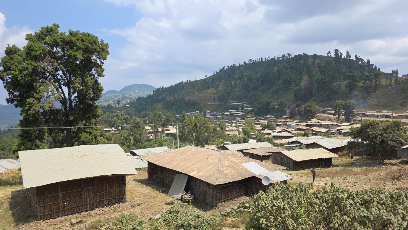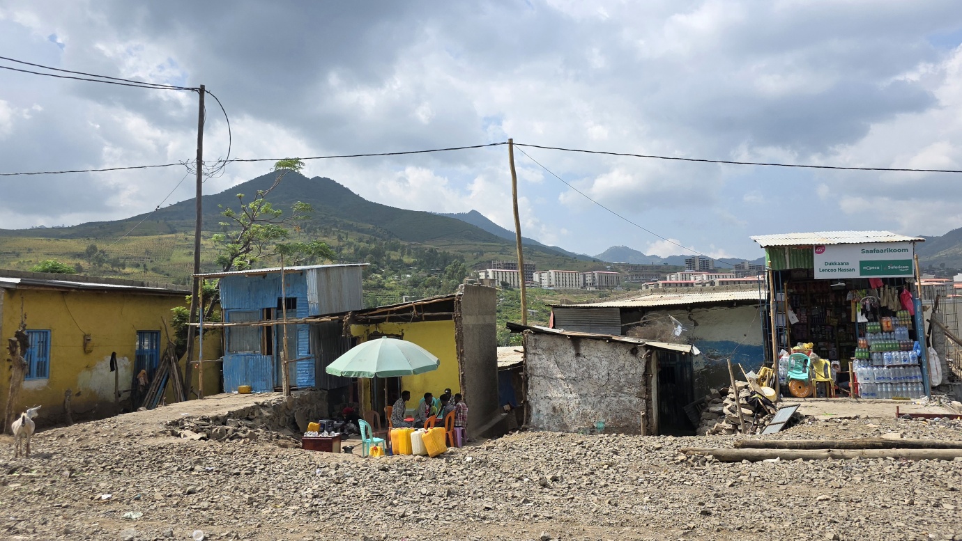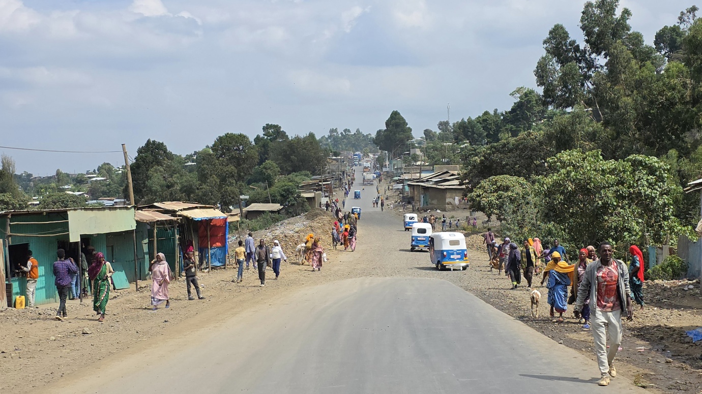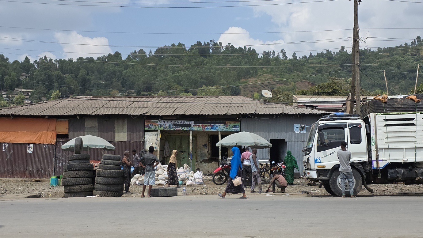 The road from Chiro to Harar offers a mixed landscape with some beautiful scenery, but it is also marked by rough, chaotic traffic in the smaller towns along the way. The tarmac was good, with a few short, damaged sections, so driving through the Ethiopian Highlands was not so bad, with gradually increasing altitude to nearly 2,700 meters above sea level. We made a few photo stops at possible viewpoints and in small villages. We also got an invitation to see the local house after the wedding, where the whole family was relaxed after chewing khat.