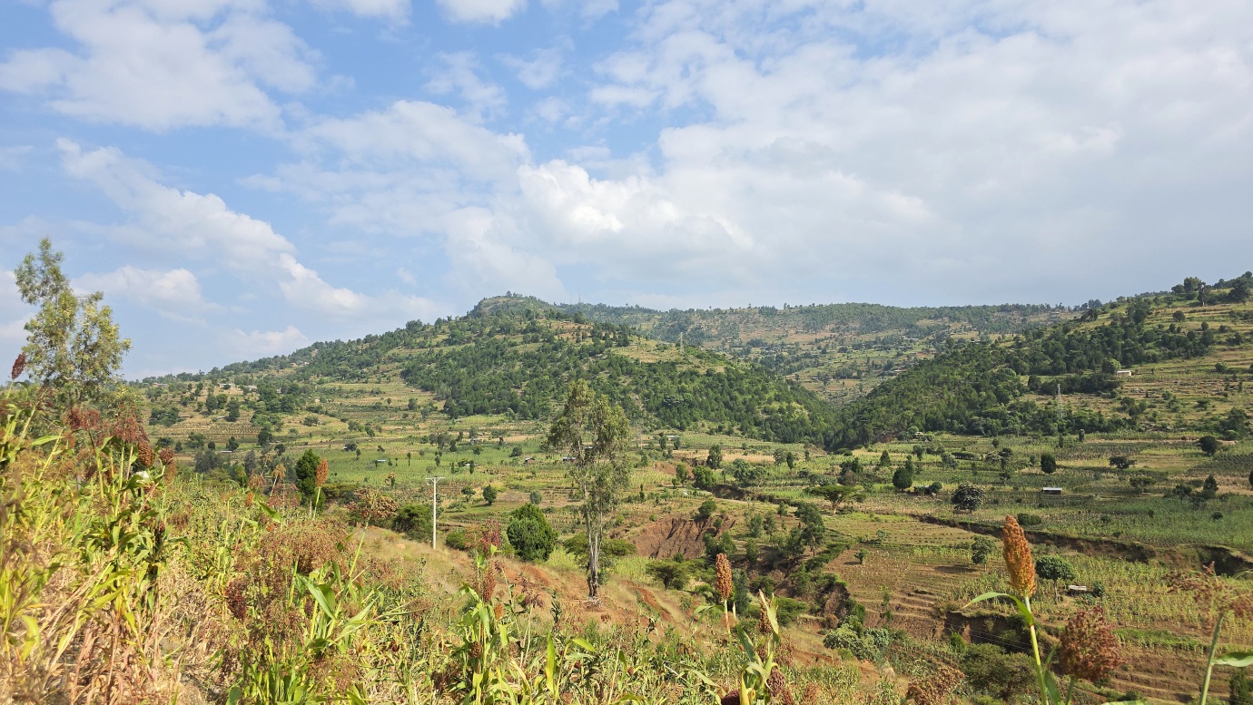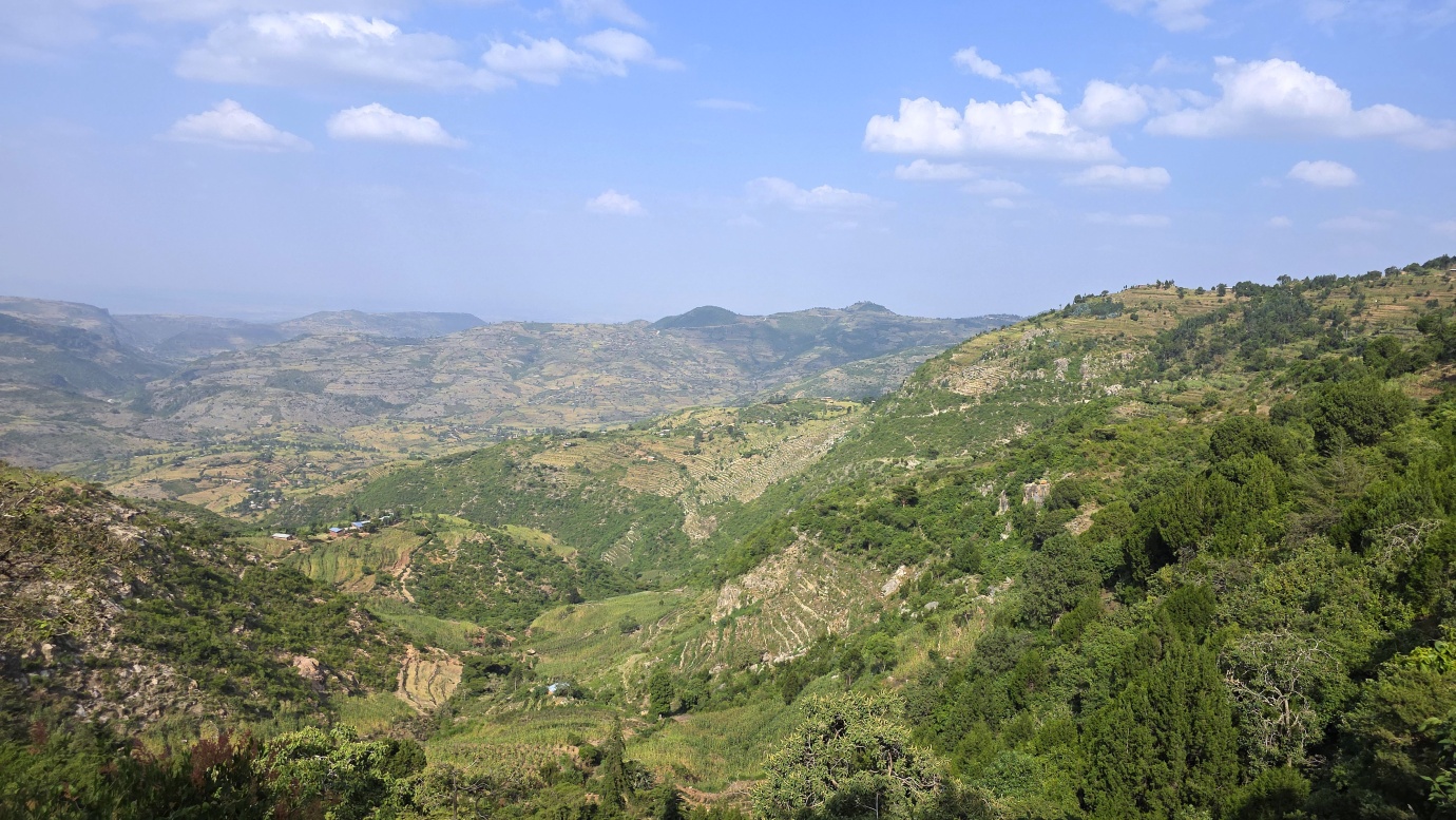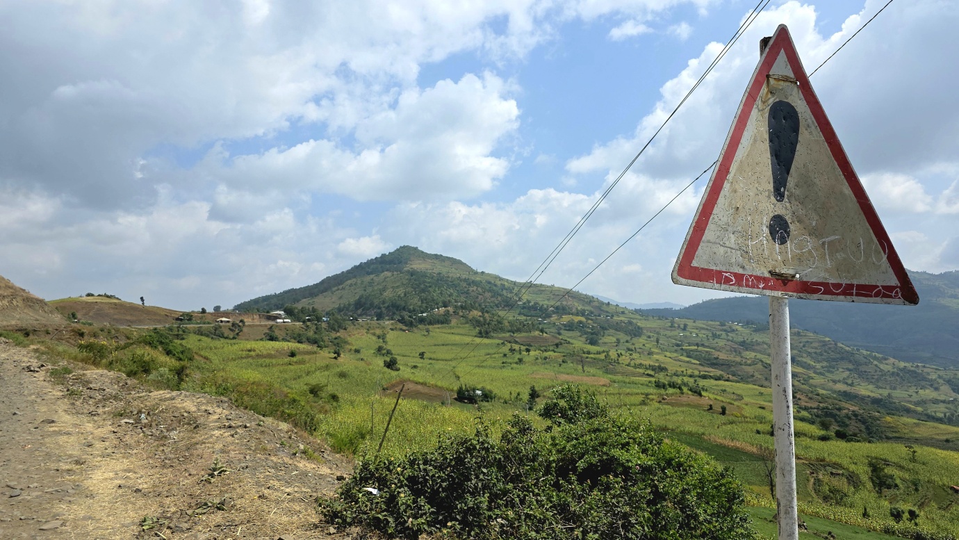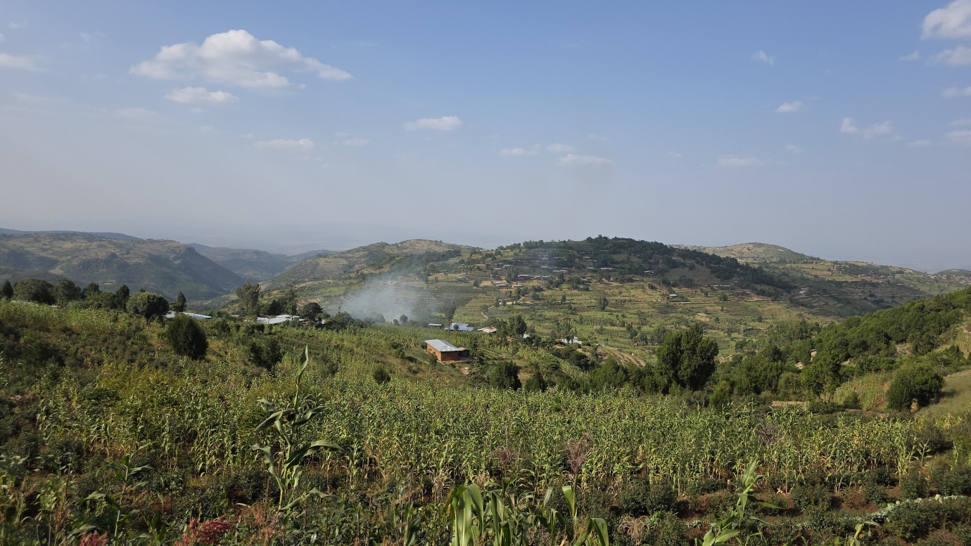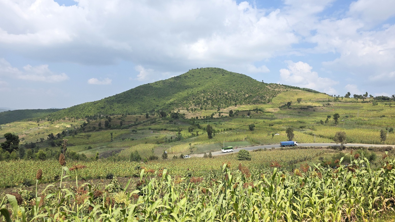 The road from Chiro to Harar offers a mixed landscape with some beautiful scenery, but it is also marked by rough, chaotic traffic in the smaller towns along the way. The tarmac was good, with a few short, damaged sections, so driving through the Ethiopian Highlands was not so bad, with gradually increasing altitude to nearly 2,700 meters above sea level. We made a few photo stops at possible viewpoints and in small villages. We also got an invitation to see the local house after the wedding, where the whole family was relaxed after chewing khat.