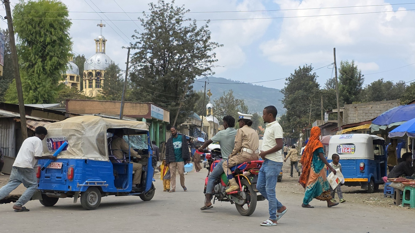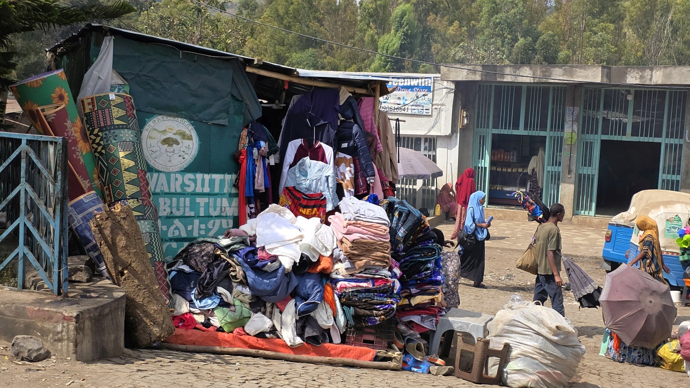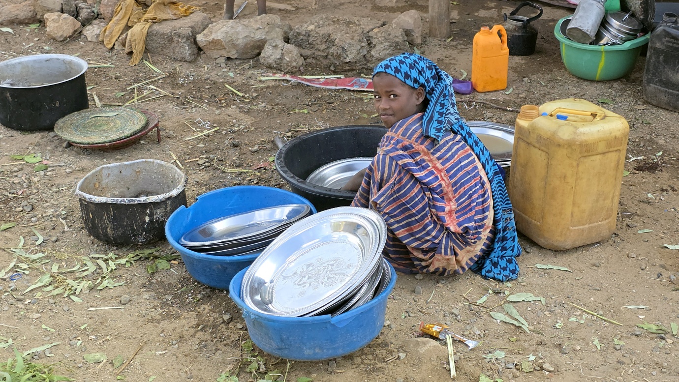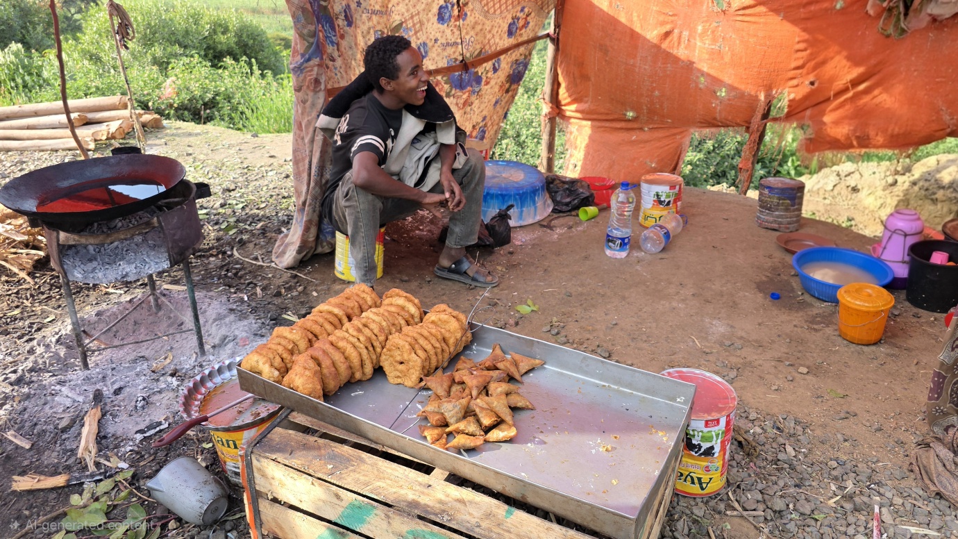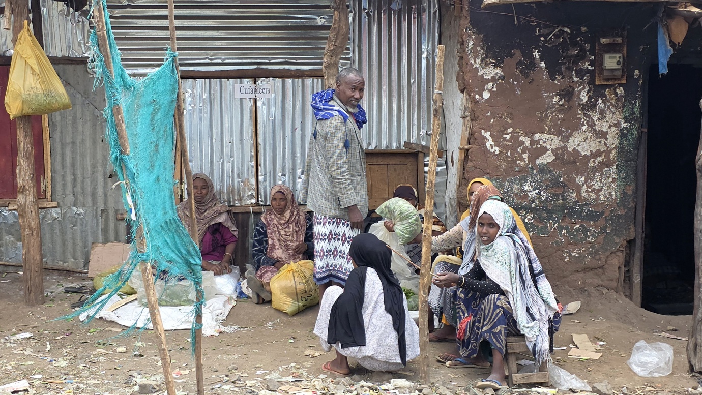 The road from Chiro to Harar offers a mixed landscape with some beautiful scenery, but it is also marked by rough, chaotic traffic in the smaller towns along the way. The tarmac was good, with a few short, damaged sections, so driving through the Ethiopian Highlands was not so bad, with gradually increasing altitude to nearly 2,700 meters above sea level. We made a few photo stops at possible viewpoints and in small villages. We also got an invitation to see the local house after the wedding, where the whole family was relaxed after chewing khat.