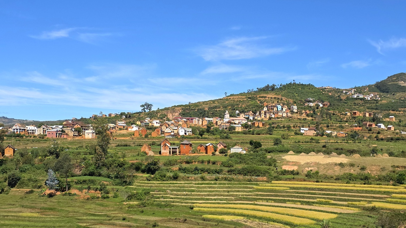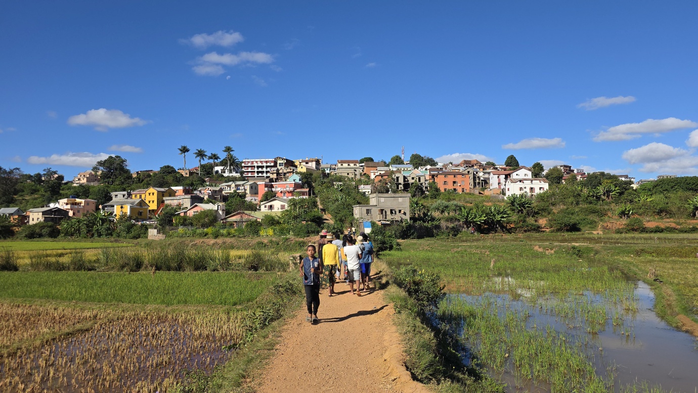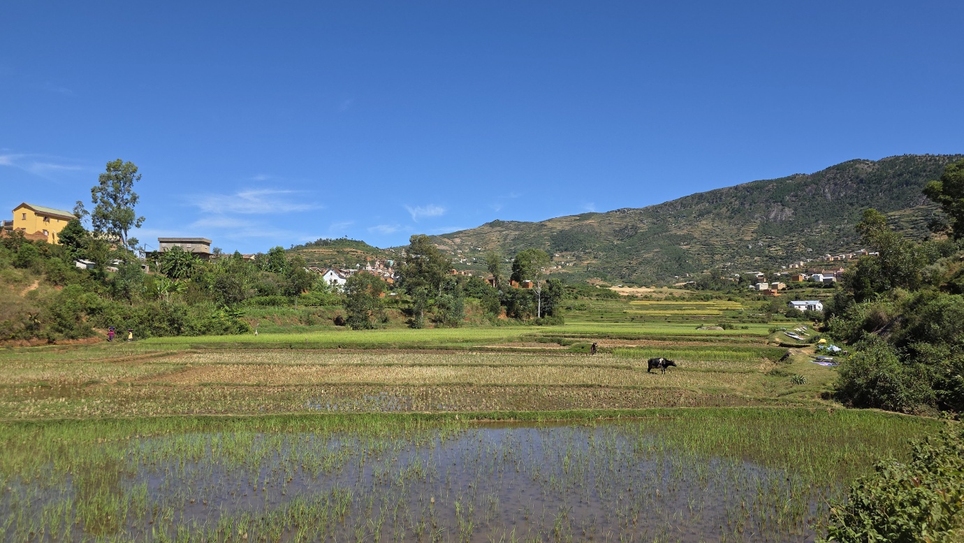 Serene, terraced rice fields, red-earth homes, and the intricate woodcarving traditions of the Zafimaniry people define rural life around Ambositra. We hired a local guide (80,000 MGA) and set off on a hike to Rova d’Ambositra (🎟️10,000 MGA), the former residence of the last Betsileo kings. The journey covered about 12 kilometres over four hours, leading us through peaceful countryside dotted with rice terraces and offering sweeping views across the highlands.