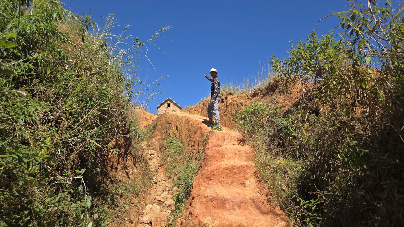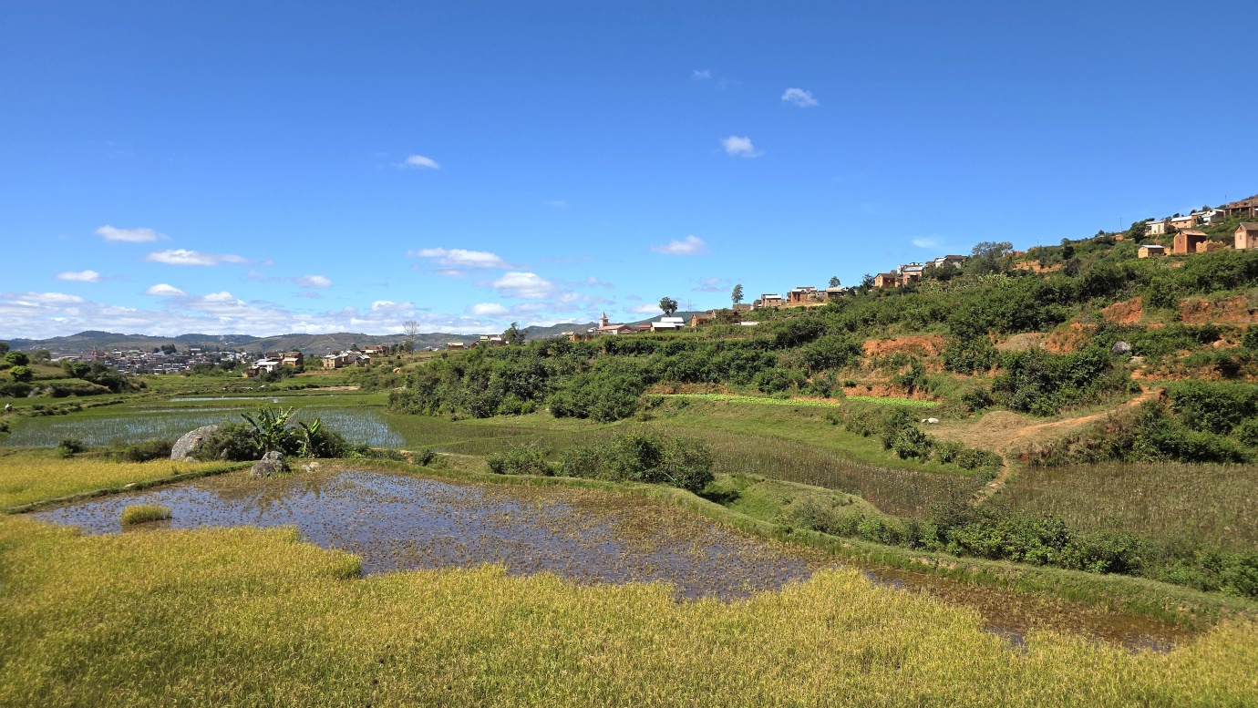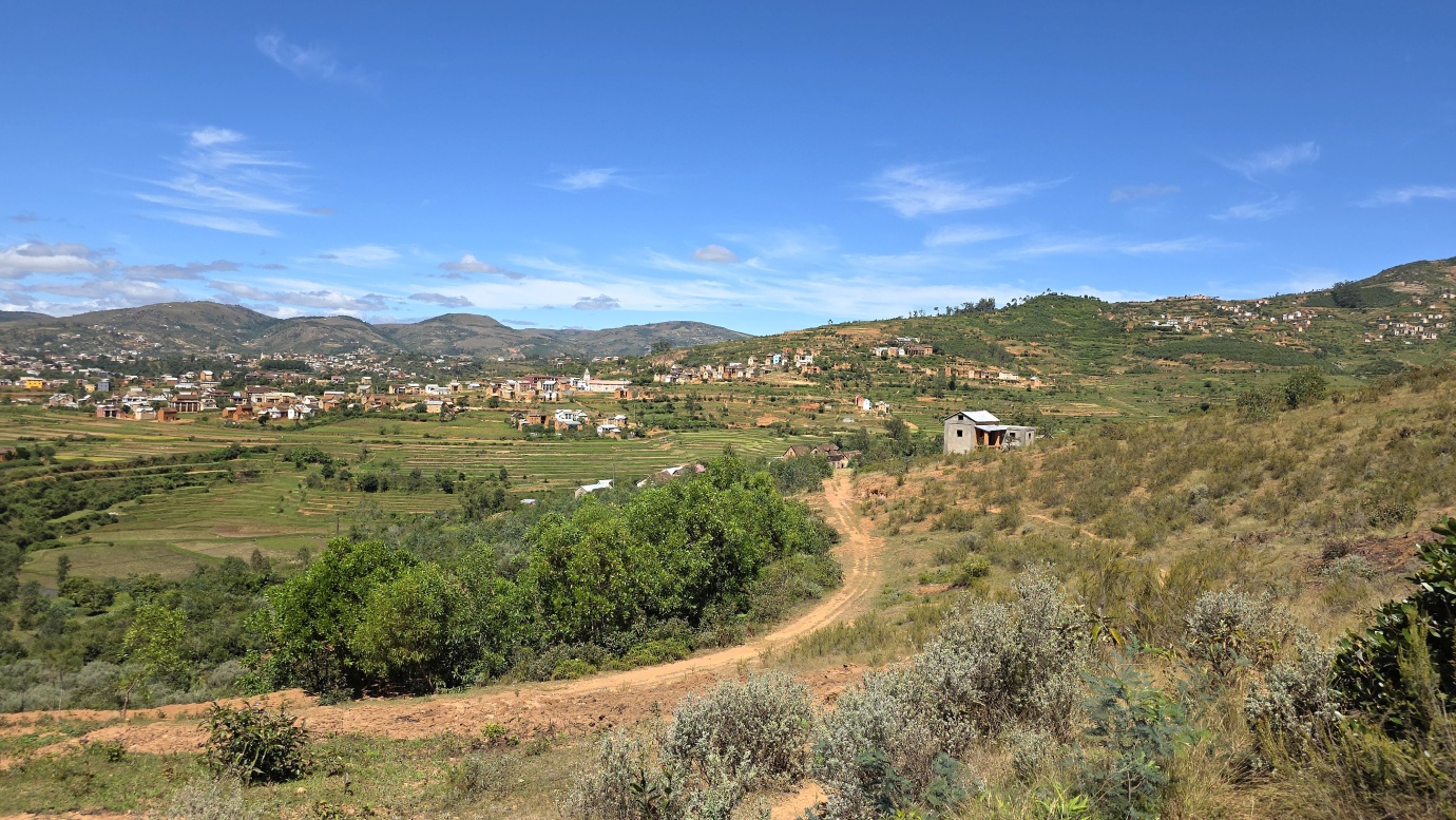 Serene, terraced rice fields, red-earth homes, and the intricate woodcarving traditions of the Zafimaniry people define rural life around Ambositra. We hired a local guide (80,000 MGA) and set off on a hike to Rova d’Ambositra (🎟️10,000 MGA), the former residence of the last Betsileo kings. The journey covered about 12 kilometres over four hours, leading us through peaceful countryside dotted with rice terraces and offering sweeping views across the highlands.