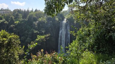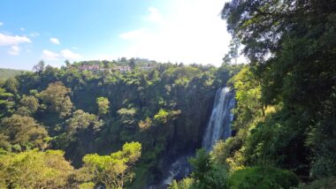 Before we left Nanyuki early in the morning, we made a short stop at the Equator monument next to our parking spot. Then we drove for two hours to Thomson’s Falls, a 74-meter waterfall in Nyahururu, named after Scottish geologist Joseph Thomson. It is a popular tourist destination (🎟️1,000 KES) known for its spectacular viewpoints, nature walks, and a nearby hippo pool upstream. There is a trail down to the base, but some books warn that it’s not safe to visit due to recent robberies. There are quite a few hustlers and hawkers, as well as a group of so-called “local performers” who want to take a photo with tourists for a fee. It was very quiet during our visit, so, just for the effort of dressing like local Maasai and Agikuyu, we gave them 200 KES for the photo (4x 50 KES).