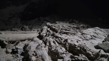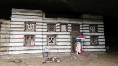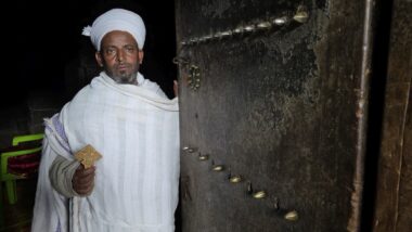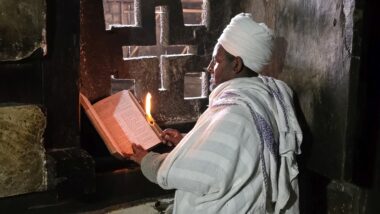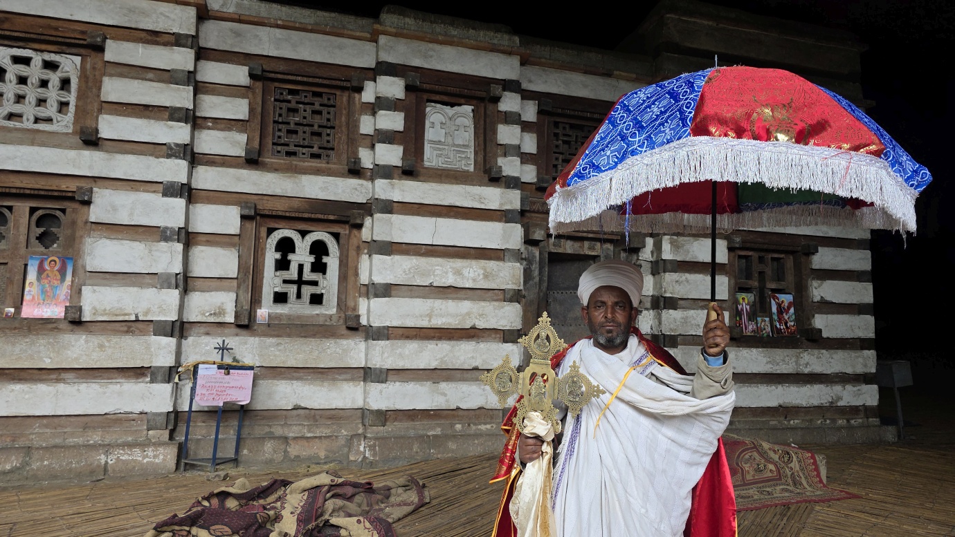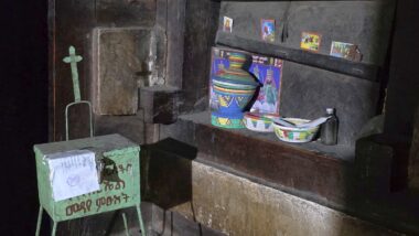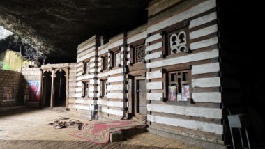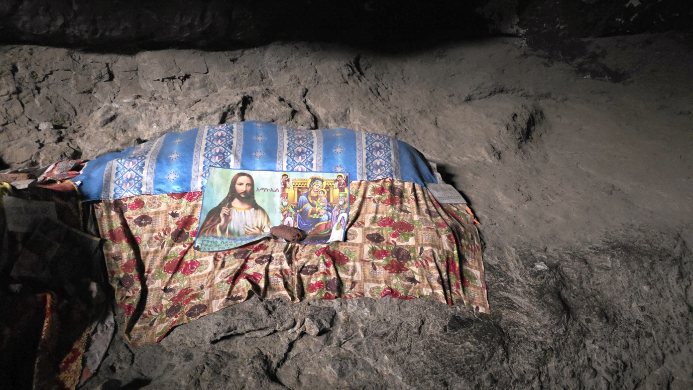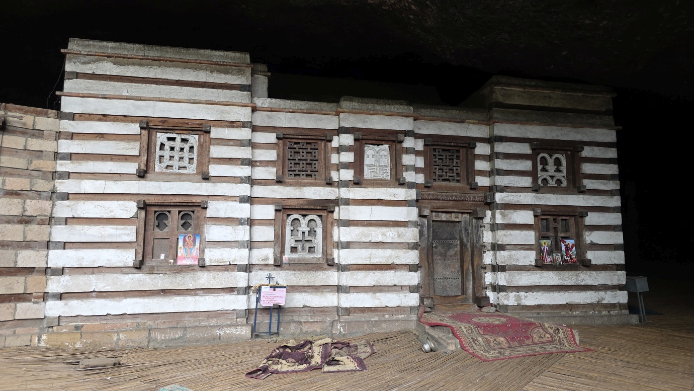 The Yemrehanna Kristos Church (🎟️60 USD / 8,820 ETB) is an ancient Ethiopian Orthodox church built into a natural cave on the side of Mount Abuna Yosef in the Lasta Mountains, approximately 40 km from Lalibela. It was constructed in the 11th or 12th century, commissioned by and named after the Zagwe dynasty priest-king Yemrehana Krestos. It is a well-preserved example of late Aksumite architecture, featuring a combination of stone and cedarwood construction. The entire structure is built on a foundation of olive wood panels and was constructed before the famous rock-hewn churches of nearby Lalibela. The church remains an active pilgrimage site, where the remains of monks and pilgrims are mummified and stored behind the main structure.