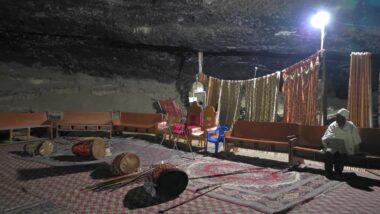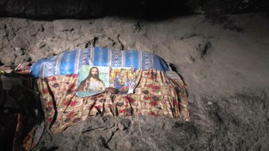 For centuries, the church was extremely remote, requiring a long and arduous journey on foot or by mule. We had no mule, so we took a car and drove through villages controlled by the Fano militia to reach the parking area, from which we still had to hike for 30 minutes up a steep path to the cave.