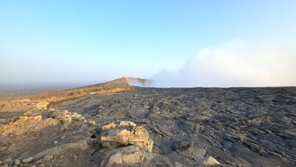 Then we drove on asphalt until Erepeti, where a 49-kilometre-long dirt track runs through a rough, hot and dry desert landscape with solidified lava, rock, and sand. For this trip, we joined other tourists to share the costly permit. After arriving at base camp, we rushed for 30 minutes...