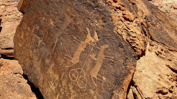 The oasis Jubbah lies on the old caravan road linking Dumat Al-Jandal with Ha’il, surrounded by the vast Nefud Desert. Jubbah is surrounded by large sandstone outcrops filled with ancient petroglyphs and inscriptions on the rock face. The carvings found on the Jibal Umm Sinman cover...